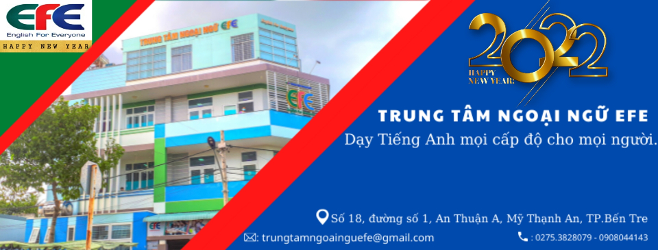 Trung tâm anh ngữ EFE là trung tâm có trụ sở chính đặt tại TP Bến Tre. Với cơ sở vật chất được thiết kế hiện đại, tất cả các phòng học được trang bị đầy đủ với các trang thiết bị dạy và học ngoại ngữ như máy lạnh, TV, internet, bàn ghế được sắp xếp phù hợp với từng độ tuổi và các hoạt động dạy học. Trung tâm còn có đội ngũ giáo viên có trình độ chuyên môn vững vàng, nhiều năm kinh nghiệm giảng dạy trong nhiều môi trường dạy và học ngoại ngữ khác nhau, bên cạnh giáo viên Việt Nam tốt nghiệp chuyên Anh tại các trường Đại học uy tín, nơi đây còn có giáo viên bản xứ.