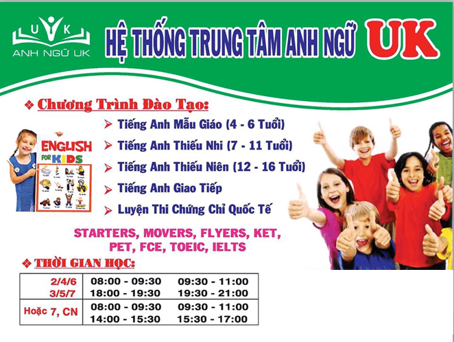 Nếu bạn ở Cầu Kè và quan tâm đến việc học tiếng Anh của con mình, hãy đến Anh ngữ UK Cầu Kè để được các giáo viên tư vấn về lộ trình học cho con mình nhé.