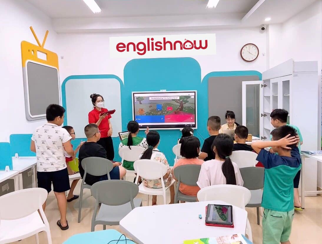 Tại Englishnow, học sinh được đắm chìm trong môi trường tiếng Anh bản ngữ với hệ thống bài học có tính ứng dụng, nội dung học tập được xây dựng dựa trên các câu chuyện và tình huống giao tiếp đời thường. Mô hình học tập cá nhân hóa cho phép học sinh học chủ động với máy tính bảng và học 1-1 với giáo viên, mang đến cơ hội tương tác nhiều hơn đến 81%. Bên cạnh đó, các hoạt động dự án giúp học sinh rèn luyện tư duy tiếng Anh trong giải quyết vấn đề, sáng tạo, thuyết trình, làm việc nhóm,...