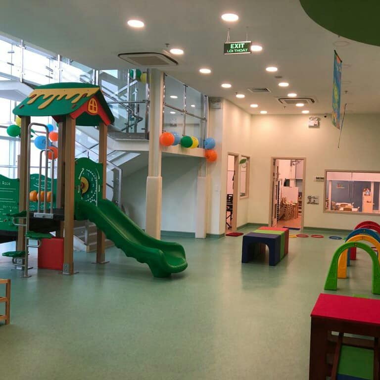 Không gian rộng rãi, thoáng mát với sân chơi bên trong lẫn bên ngoài. Phòng học đa chức năng, sạch sẽ; phòng chức năng riêng phục vụ chương trình đặc biệt của Kinderland.