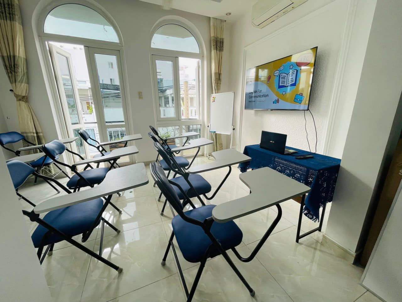 Trung tâm được trang bị đầy đủ các thiết bị hiện đại phục vụ cho việc giảng dạy và học tập. Phòng học rộng rãi, thoáng mát, được trang bị máy chiếu, bảng trắng và hệ thống âm thanh chất lượng cao, tạo điều kiện thuận lợi cho việc học tập và thực hành giao tiếp. Ngoài ra, trung tâm còn có khu vực thư viện với nhiều tài liệu học tập phong phú, giúp học viên tự nghiên cứu và nâng cao kiến thức ngoài giờ học.