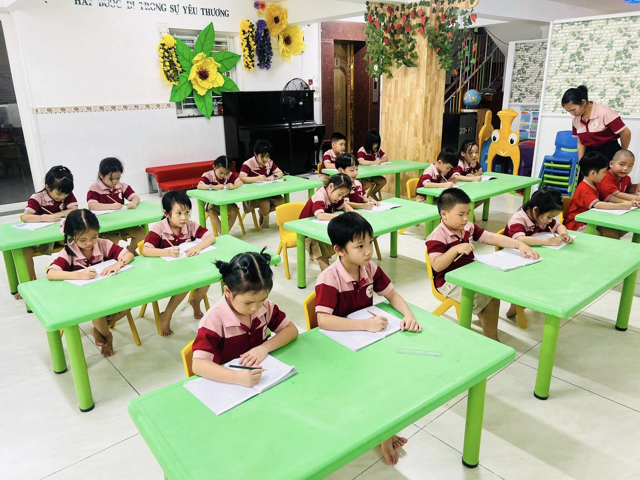 Nhà trường cũng chú trọng xây dựng một môi trường làm việc gắn kết, nơi các giáo viên luôn hỗ trợ lẫn nhau, cùng chia sẻ kinh nghiệm và phương pháp giảng dạy. Chính sự đồng lòng này đã tạo nên một tập thể tận tâm – chuyên nghiệp – sáng tạo, giúp trẻ cảm nhận được tình yêu thương và sự quan tâm trong từng giờ học, từng hoạt động thường ngày.