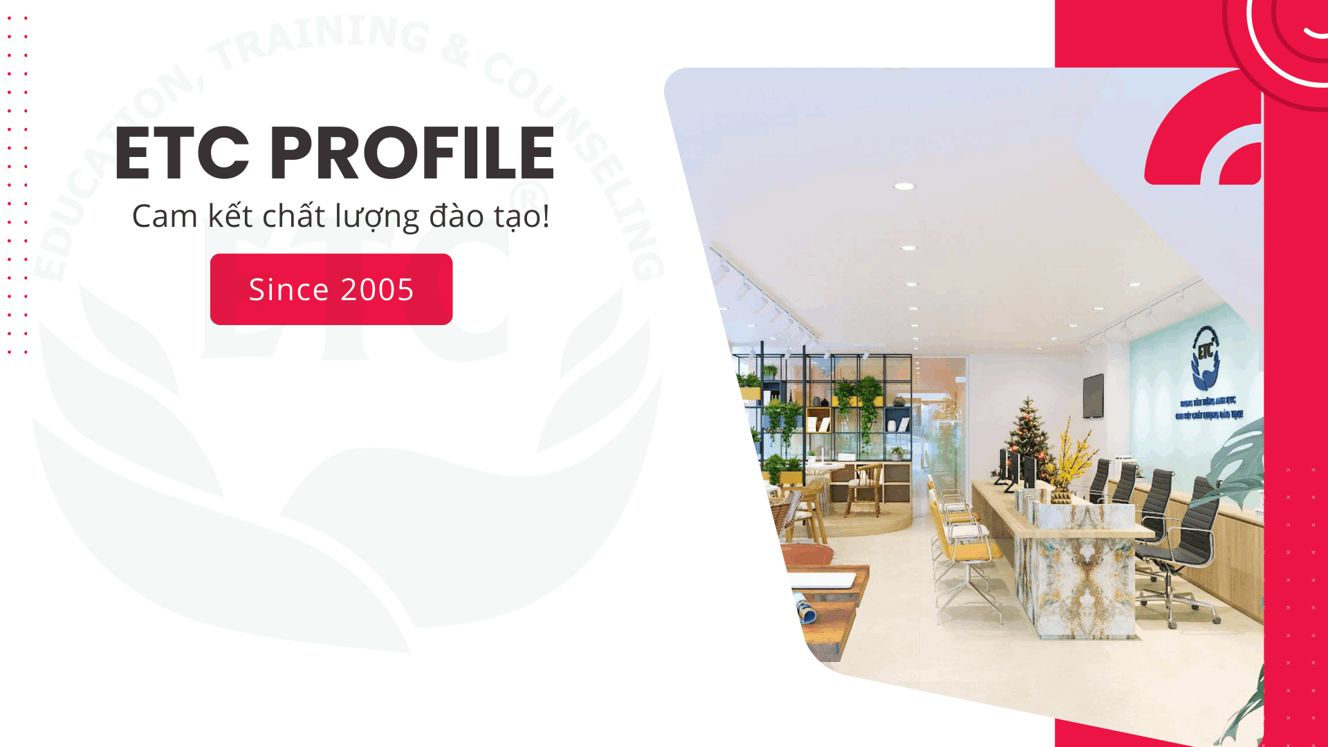 Với tôn chỉ hoạt động: "Cam kết chất lượng đào tạo!", ETC luôn đổi mới, nâng cao chương trình giảng dạy, phát triển đội ngũ giáo viên, nhân viên chuyên môn cao và tận tâm. Nhờ đó, trung tâm không ngừng mở rộng, đạt được nhiều thành tựu và đóng góp tích cực vào sự phát triển của ngành giáo dục, đào tạo ngoại ngữ.