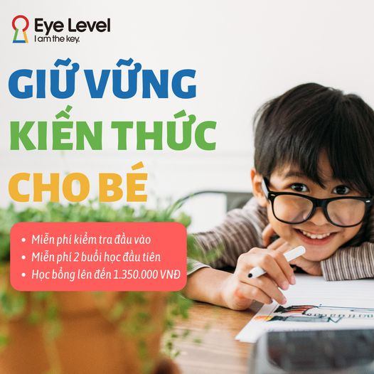 Hơn 40 năm, 20 quốc gia và 6 năm tại Việt Nam, Eye Level giảng dạy Toán tư duy và tiếng Anh dựa trên phương pháp hướng dẫn tự học có định hướng – giảng dạy dựa trên giáo trình lộ trình học riêng biệt theo trình độ, khả năng từng cá nhân kết hợp giáo trình biên soạn chi tiết, giúp học viên chủ động, độc lập và tự giác trong quá trình học tập. Đến với Eye Level, trẻ sẽ được: