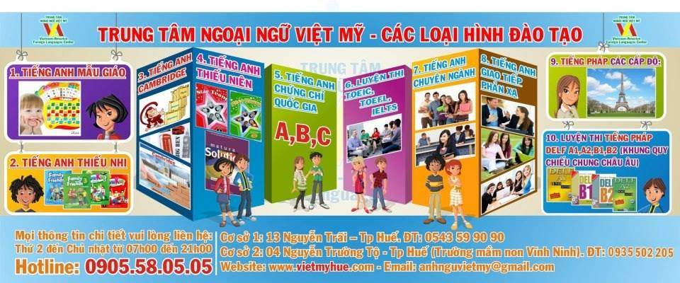 Trung Tâm Tiếng Anh Việt Mỹ - Thái Phiên chuyên đào tạo tiếng Anh với các khóa học như: tiếng Anh mẫu giáo, thiếu nhi, tiếng Anh THCS,THPT, tiếng Anh giao tiếp, tiếng Anh chứng chỉ quốc gia A,B,C, và ôn luyện thi các chứng chỉ quốc tế (IELTS, TOEIC, TOEFL, TOEFL IBT, PET, FCE, CAE, CPE, KET).