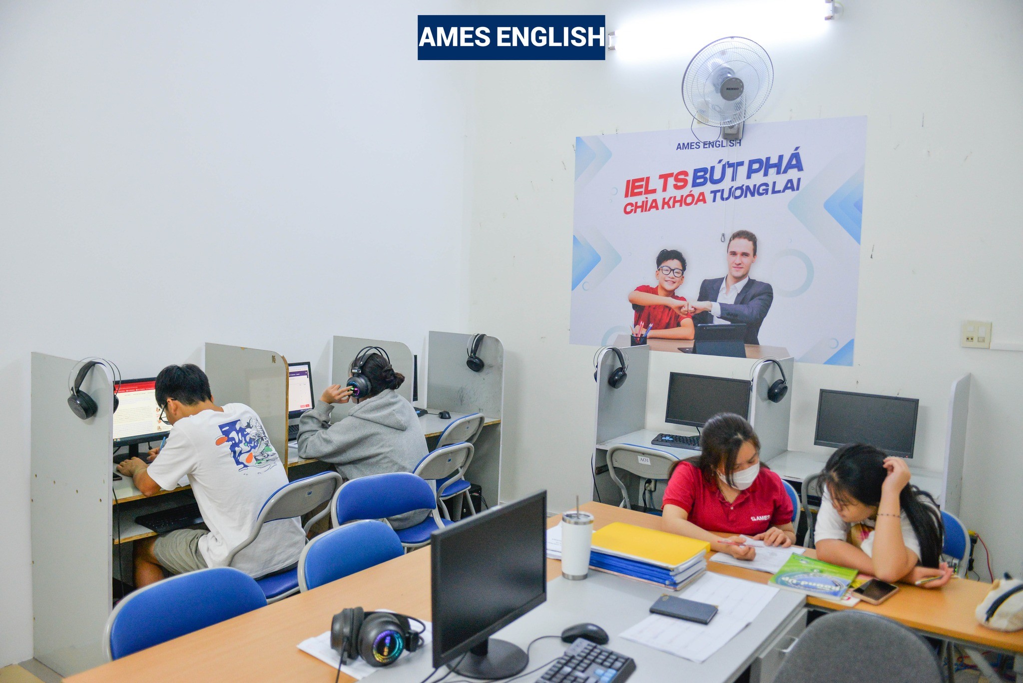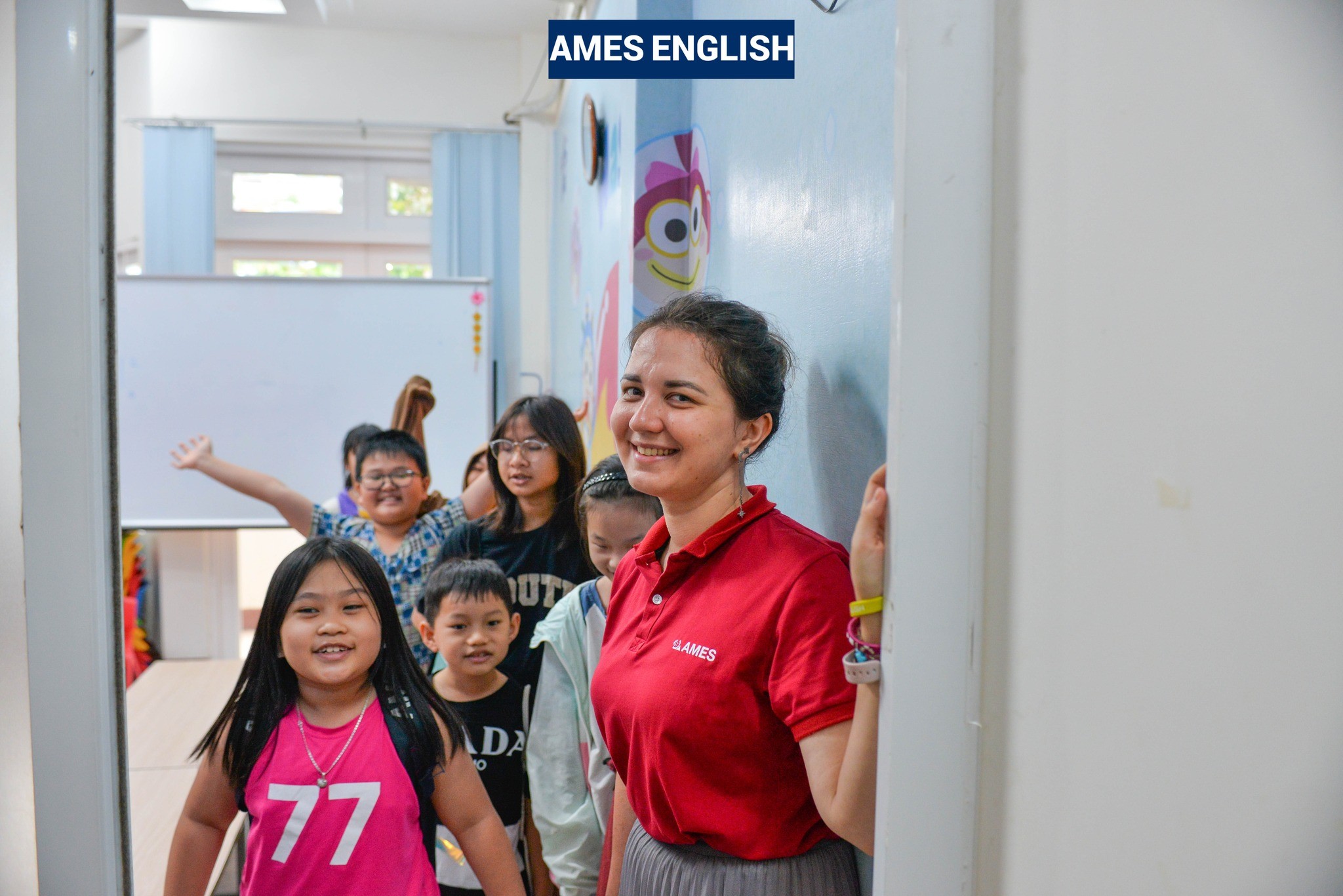 Tại AMES các giáo viên tự coi mình là những người bạn có nhiệm vụ hướng dẫn học viên tự tìm hiểu, tự khám phá các tiềm năng của bản thân. Thay vì ngồi cách xa các em trên bục giảng, các giáo viên của AMES sẽ ngồi cùng với học sinh, thảo luận với học viên và giúp đỡ học viên khi gặp khó khăn. Với phương pháp Active English này, các học viên luôn có cơ hội và có thể tự tin giao tiếp.