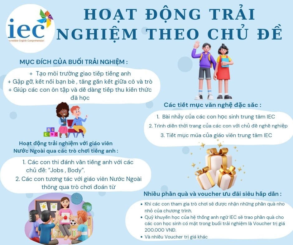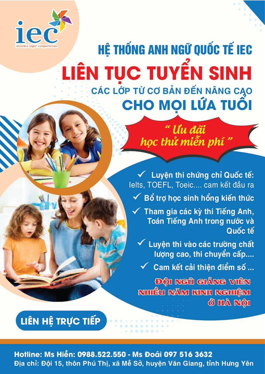 Trong suốt quá trình hoạt động, Trung tâm Anh ngữ IEC - Mễ Sở không ngừng nỗ lực mang lại trải nghiệm học tập chất lượng cao cho học viên thông qua các chương trình đào tạo và hoạt động ngoại khoá với đội ngũ nhân sự tận tâm, nhiệt tình, luôn trau dồi trình độ chuyên môn và cập nhật xu hướng công nghệ.