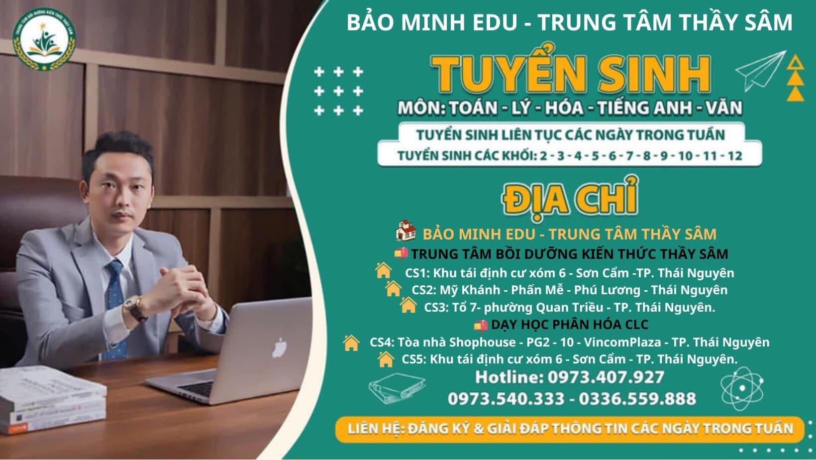 Trung tâm Bồi dưỡng kiến thức Thầy Sâm: hoạt động trên địa bàn tỉnh Thái Nguyên với hơn 10 năm kinh nghiệm cùng Triết lý học tập: "Học tập suốt đời - Lấy sự học là sự nghiệp - Rèn mình trước khi rèn người" Trung tâm luôn chú trọng: