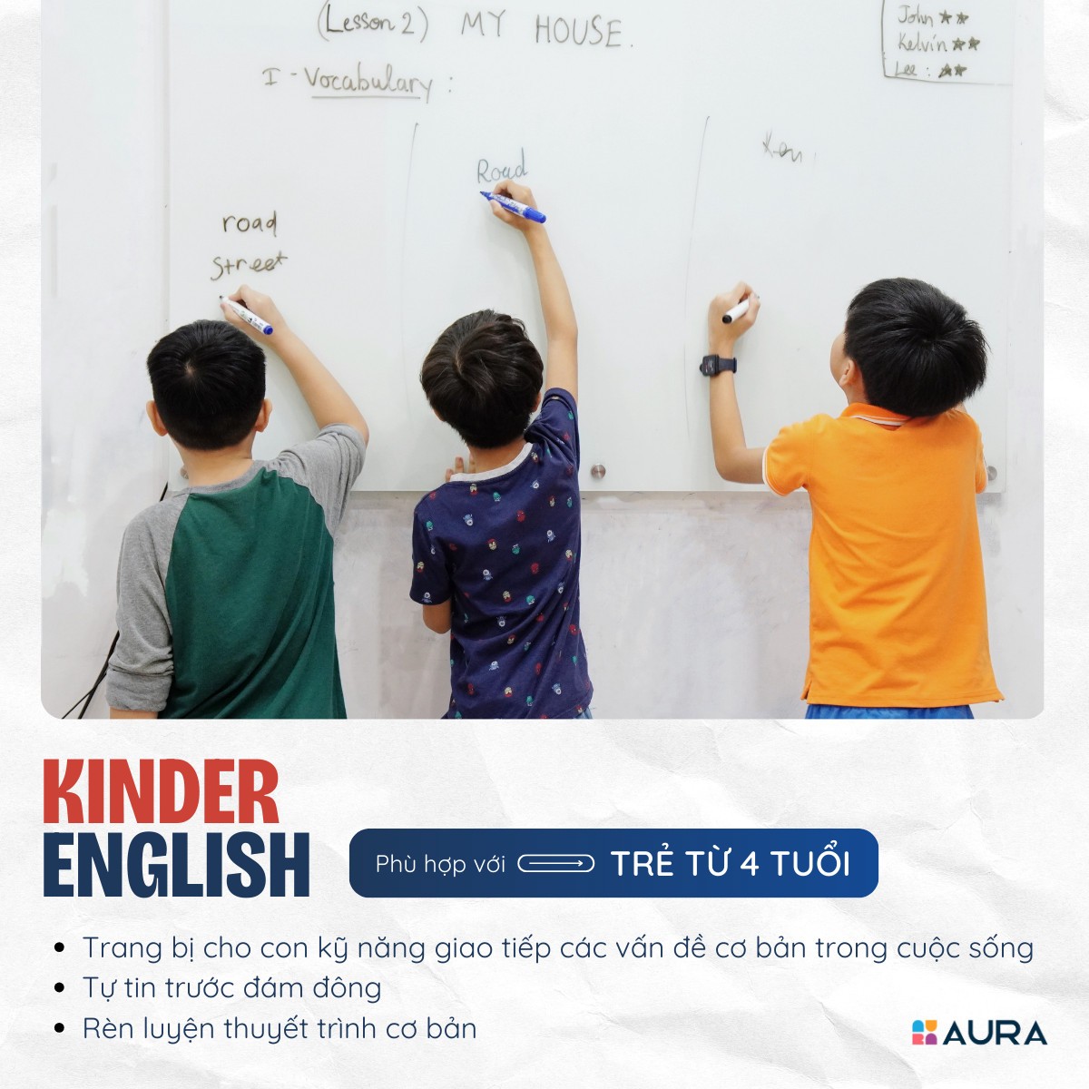 Mỗi giáo viên đều được đào tạo theo phương pháp giảng dạy của Aura nhằm nhằm truyền được niềm vui và động lực cho học viên.