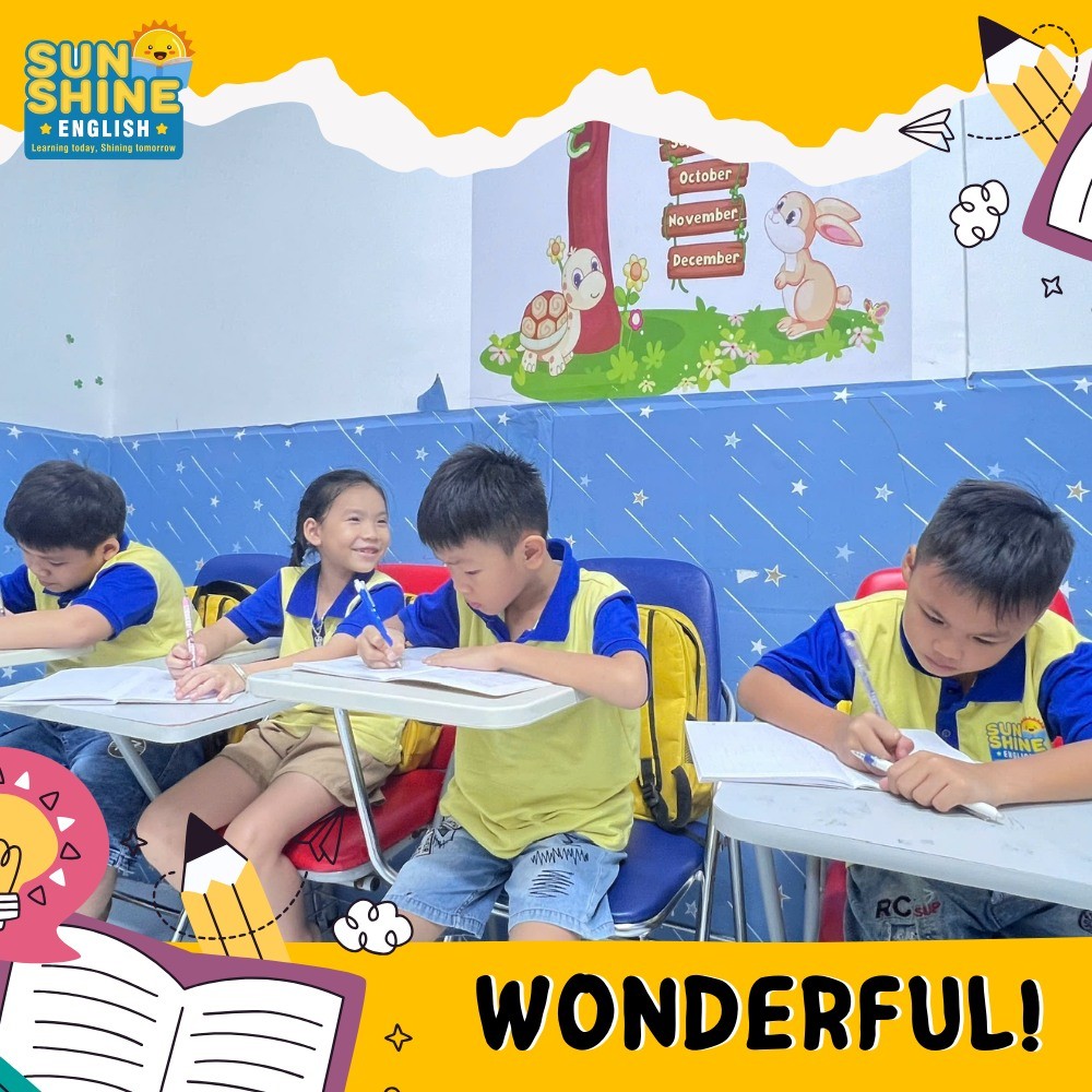 Sunshine English tập trung vào việc xây dựng nền tảng tiếng Anh vững chắc từ việc hình thành vốn từ vựng phong phú đi kèm các nguyên tắc đánh vần giúp trẻ hiểu đúng và nắm rõ quy tắc nền tảng cho việc học tiếng Anh. Từ đó, tạo bước đệm vững chắc để phát âm chính xác, giao tiếp tốt và nắm chắc ngữ pháp cho những bước chuyển tiếp sang tiếng Anh học thuật vô cùng hiệu quả.Với cơ sở vật chất hiện đại và đội ngũ giáo viên chuyên môn tận tâm, chúng tôi tự tin sẽ giúp cho tất cả các học viên đăng ký học tại SUNSHINE đều được khơi dậy niềm yêu thích và nâng cao được khả năng tiếng Anh cùng các kỹ năng khác để trẻ tự tin hơn và có cơ hội trở thành 1 công dân toàn cầu trong tương lai.