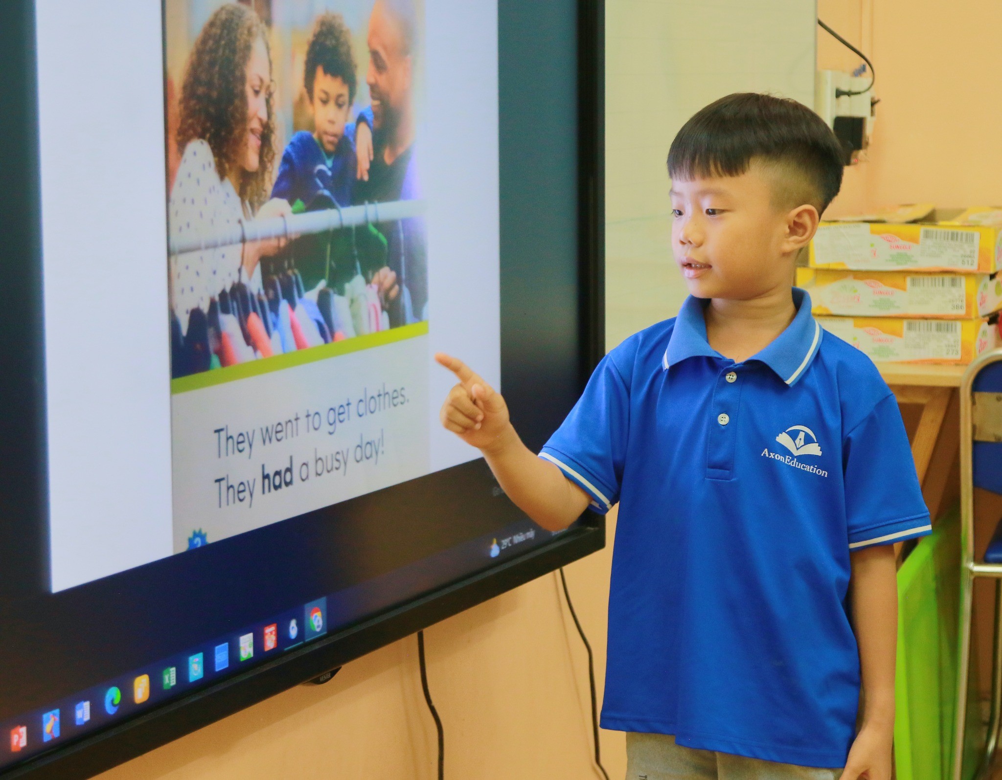 Trung tâm Anh ngữ Axon English được thành lập năm 2017 với mục tiêu đào tạo thế hệ mầm non, thế hệ tương lai, nguồn nhân lực chất luợng cao của Việt Nam. Với phương pháp dạy Persionalized Learning và phương pháp sử dụng hình ảnh trực quan cùng ngôn ngữ cử chỉ, các em được phát triển ngôn ngữ và tư duy một cách nhanh chóng. Trong suốt quá trình học, giáo viên theo sát và xây dựng chương trình phù hợp với năng lực của từng em.