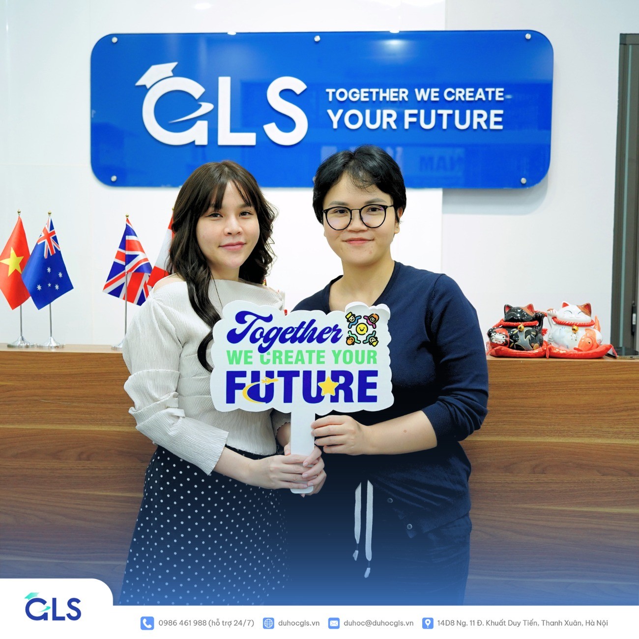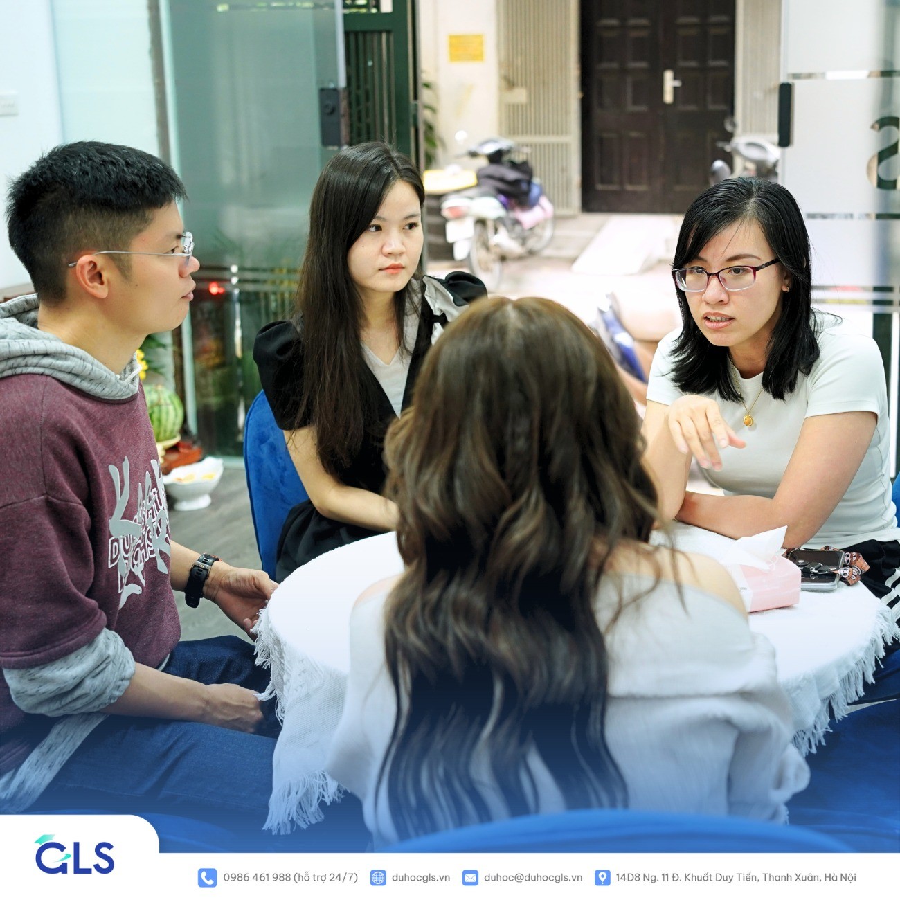 Cơ sở chính của GLS tại Hà Nội được trang bị đầy đủ tiện nghi, tạo điều kiện thuận lợi cho học viên trong quá trình học tập và chuẩn bị du học. Không gian học tập hiện đại, phòng tư vấn riêng biệt và các khu vực hỗ trợ học viên được bố trí hợp lý, đảm bảo môi trường học tập hiệu quả và chuyên nghiệp.