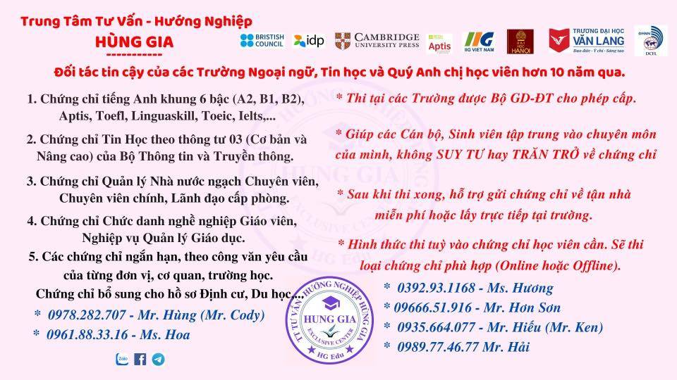 Trung tâm Tư vấn hướng nghiệp Hùng Gia - Hạ Đình gồm các khóa học