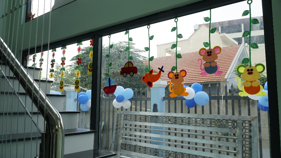 Trường có khoảng sân chơi ngoài trời và phòng học thoáng mát với nhiều ánh sáng tự nhiên.