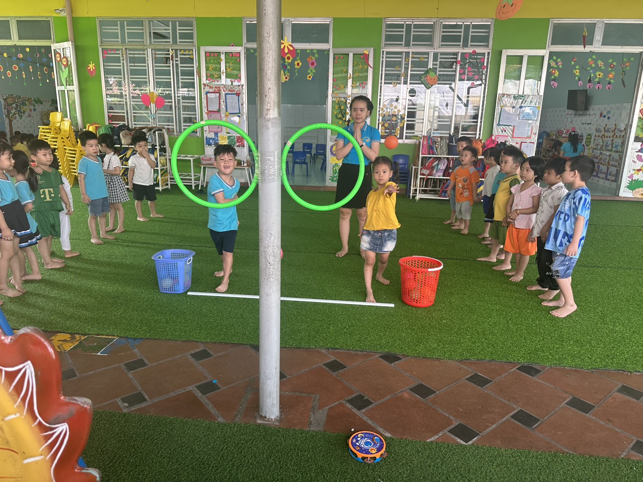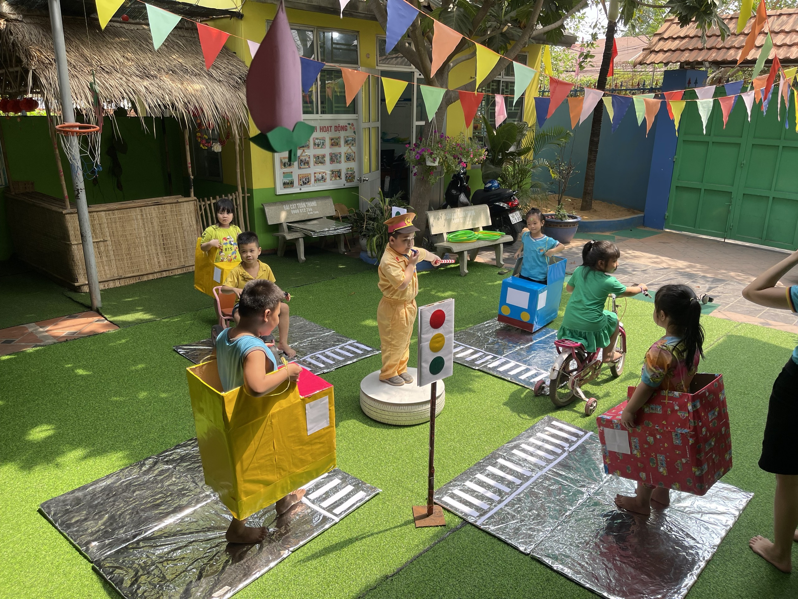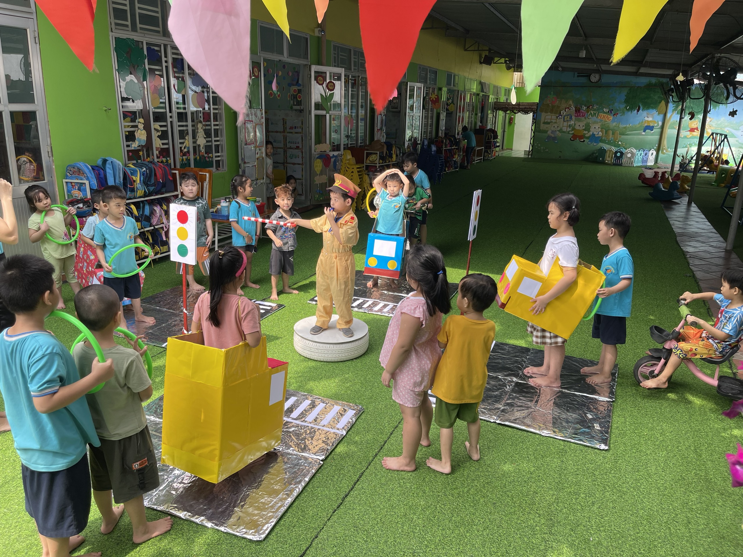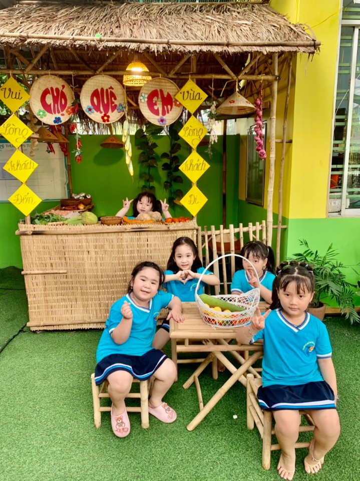Cơ sở vật chất: có sân chơi rộng được thiết kế theo môi trường lấy trẻ làm trung tâm với nhiều góc chơi như : GÓC BÁN HÀNG, GÓC CHƠI CÁT, CHƠI NƯỚC, GÓC ÂM NHẠC, GÓC KHÁM PHÁ VÀ GÓC ĐỌC SÁCH cùng với nhiều trò chơi dân gian hấp dẫn sẽ là một môi trường vừa học vừa chơi thú vị vừa giúp bé khám phá thêm nhiều điều mới mẻ qua đó bé học được nhiều kỹ năng sống hơn.