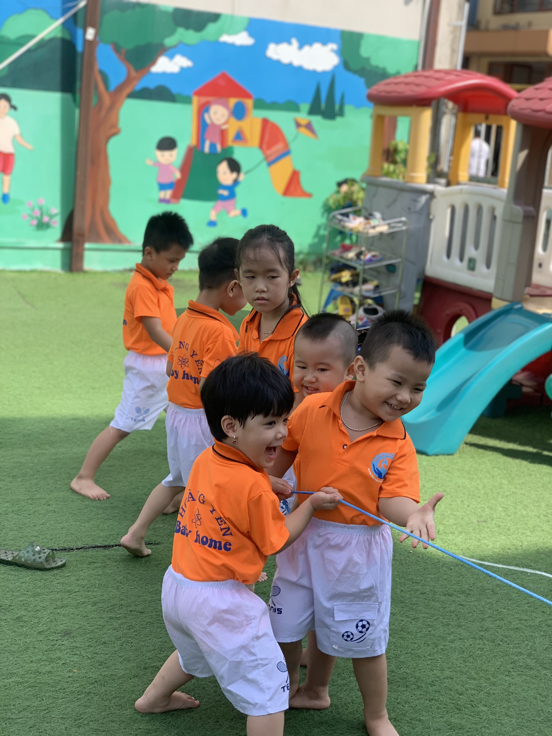 - Có sân chơi ngoài trời rộng rãi 100m2, đồ chơi phong phú, nền cỏ nhân tạo, có sân khấu để biểu diễn lễ hội.