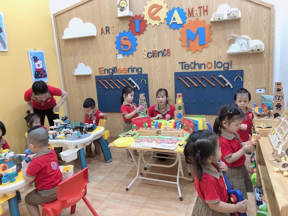 Giáo viên của trường ngoài bằng chuyên môn còn liên tục được đào tạo để giảng dạy về STEAM, GABE, TIẾNG ANH…Giáo viên luôn tôn trọng giá trị riêng của trẻ, tôn trọng sự khác biệt, không so sánh để trẻ bị ảnh hưởng đến tâm lý.