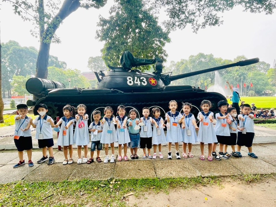 Lớp quốc tế: dạy học với giáo trình Mỹ "Look and see" đặc biệt các bé sử dụng 100% Tiếng Anh trong các hoạt động ở trường.