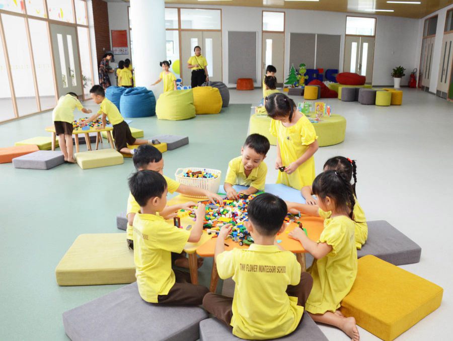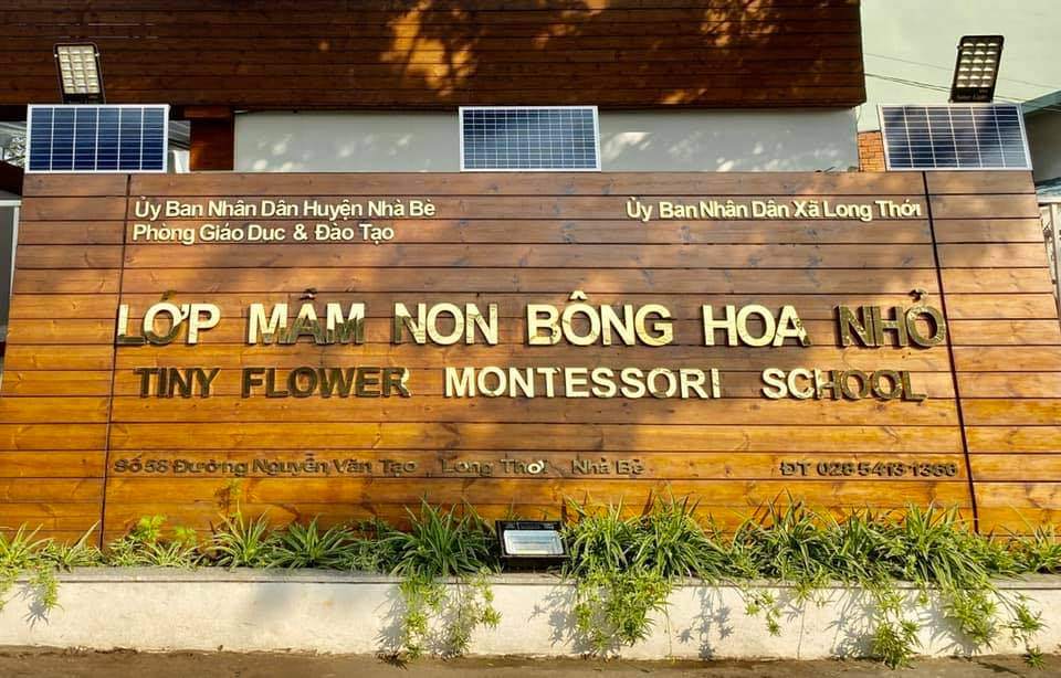 Mầm non Bông Hoa Nhỏ ( Tiny Flower Montessori) - Long Thới - Nhà Bè ngoài có các giáo viên Việt Nam đảm trách việc giảng dạy và chăm sóc còn có Giáo viên Nước ngoài dạy ngôn ngữ Anh.