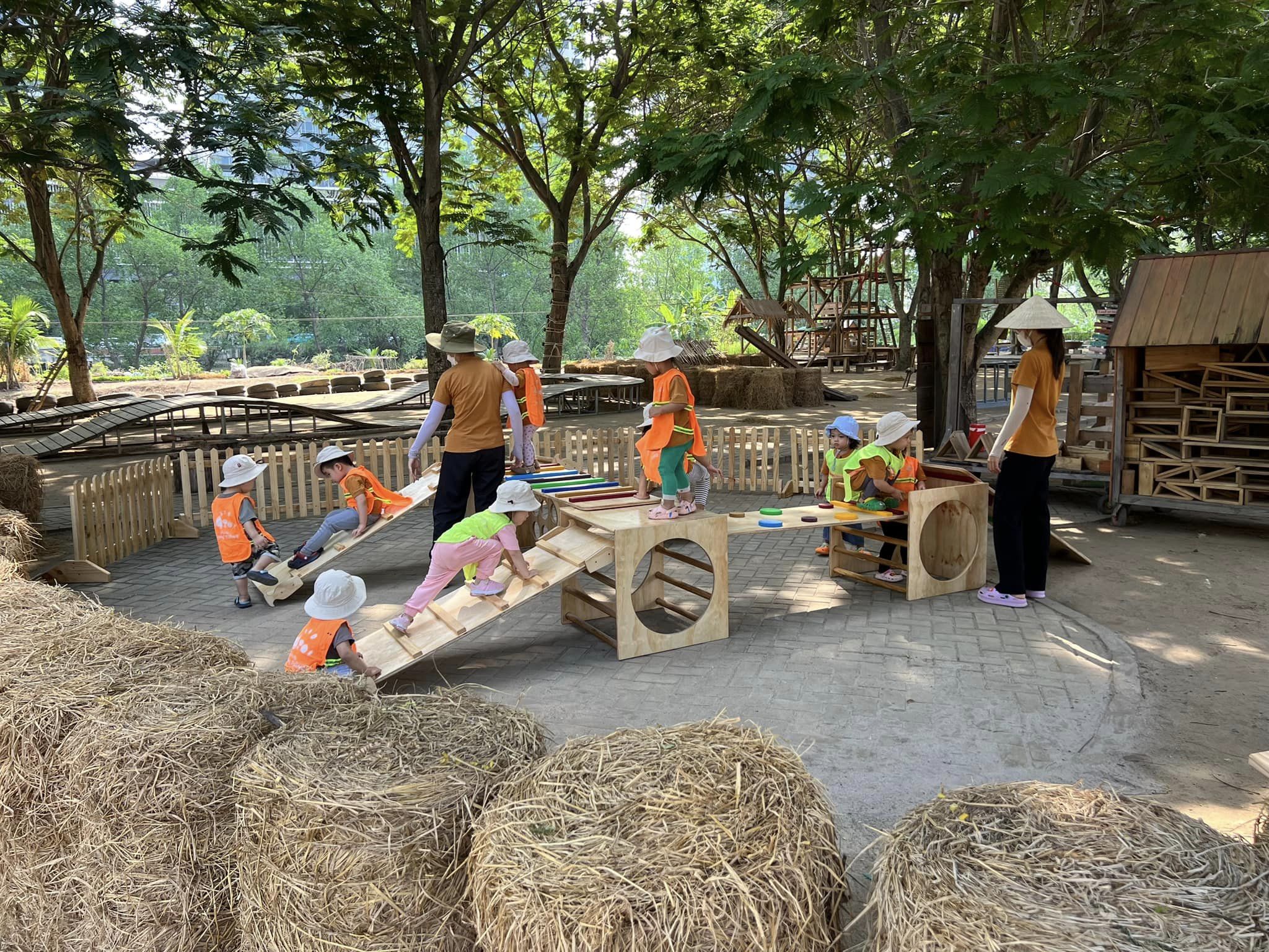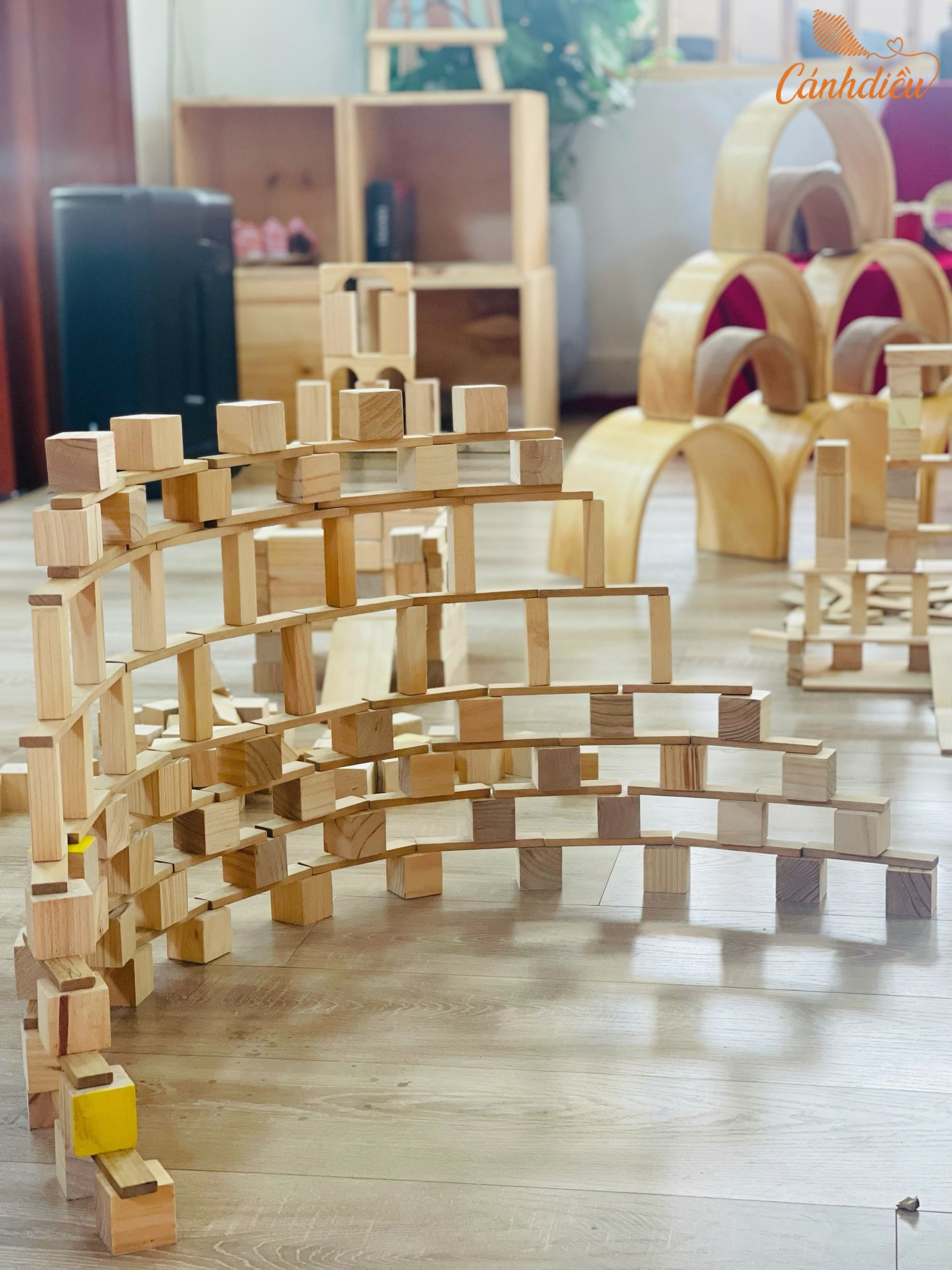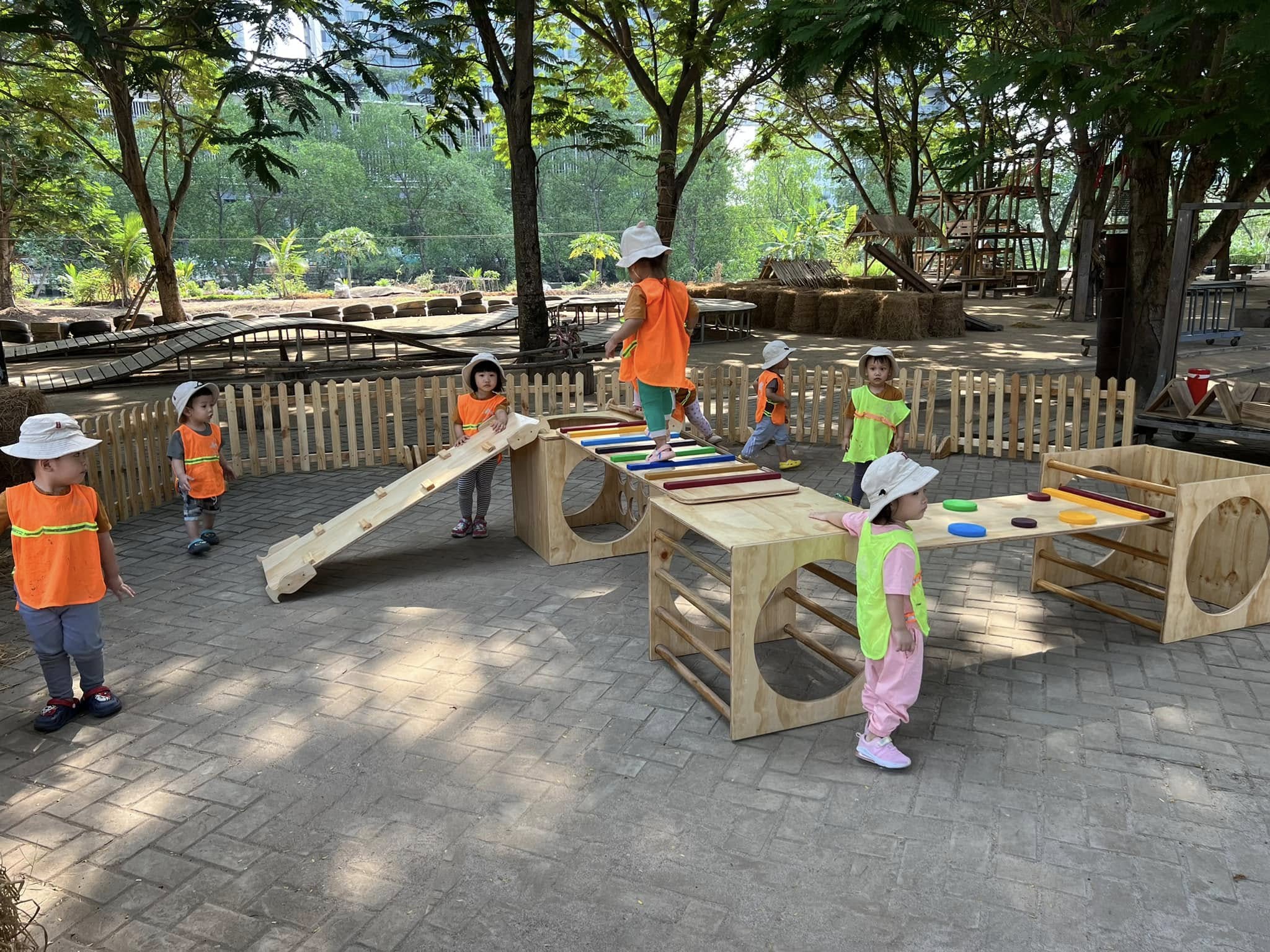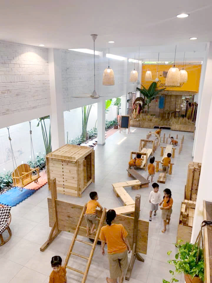 Đặc biệt, hệ thống đồ chơi gỗ được module hóa giúp trẻ tự do lắp ghép, sắp đặt và thiết kế theo ý tưởng của mình, qua đó hình thành tư duy logic, khả năng quan sát và nền tảng toán học ngay từ những năm đầu đời.
