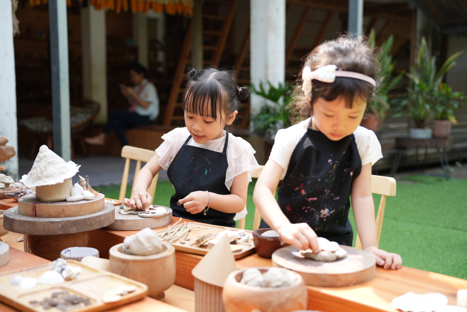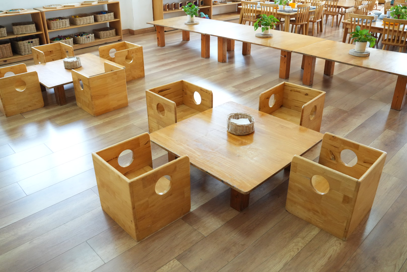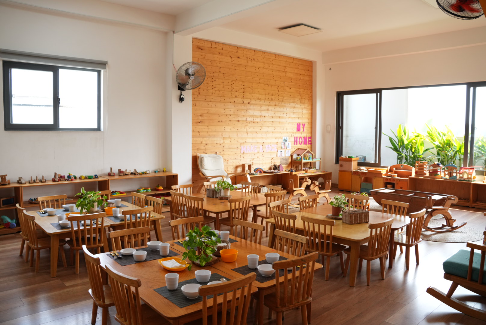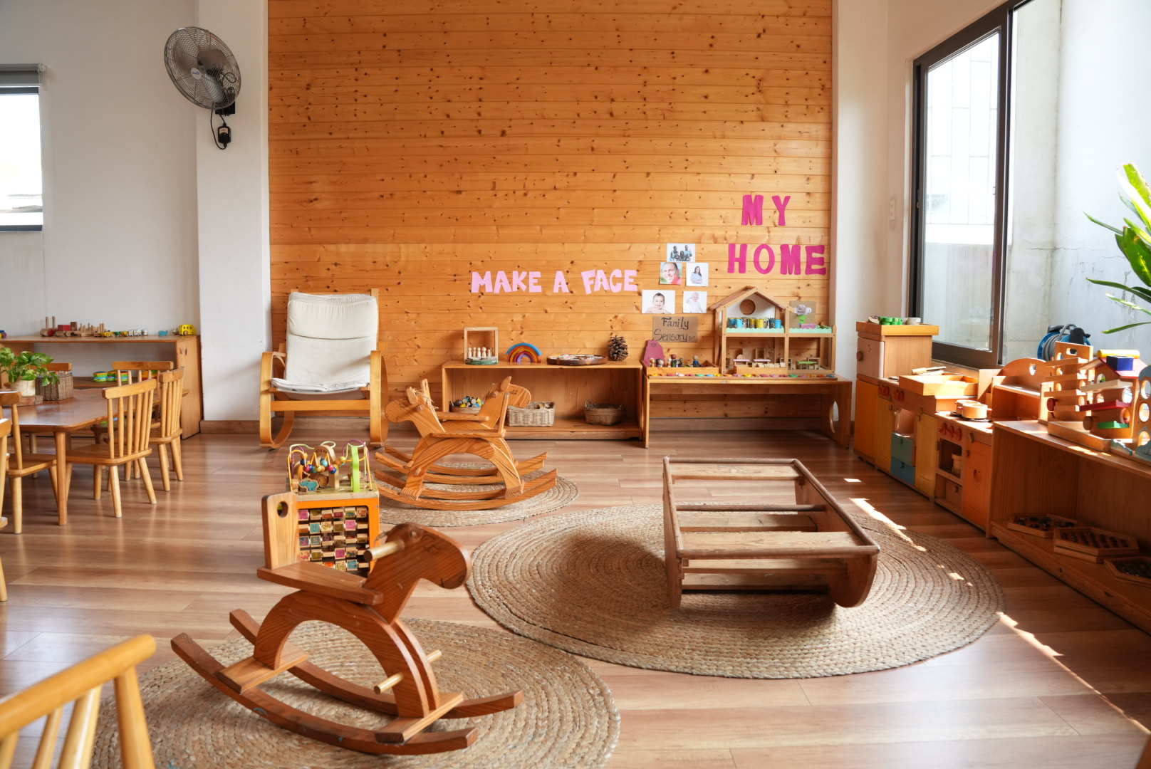 Đặc biệt, hệ thống đồ chơi gỗ được module hóa giúp trẻ tự do lắp ghép, sắp đặt và thiết kế theo ý tưởng của mình, qua đó hình thành tư duy logic, khả năng quan sát và nền tảng toán học ngay từ những năm đầu đời.
