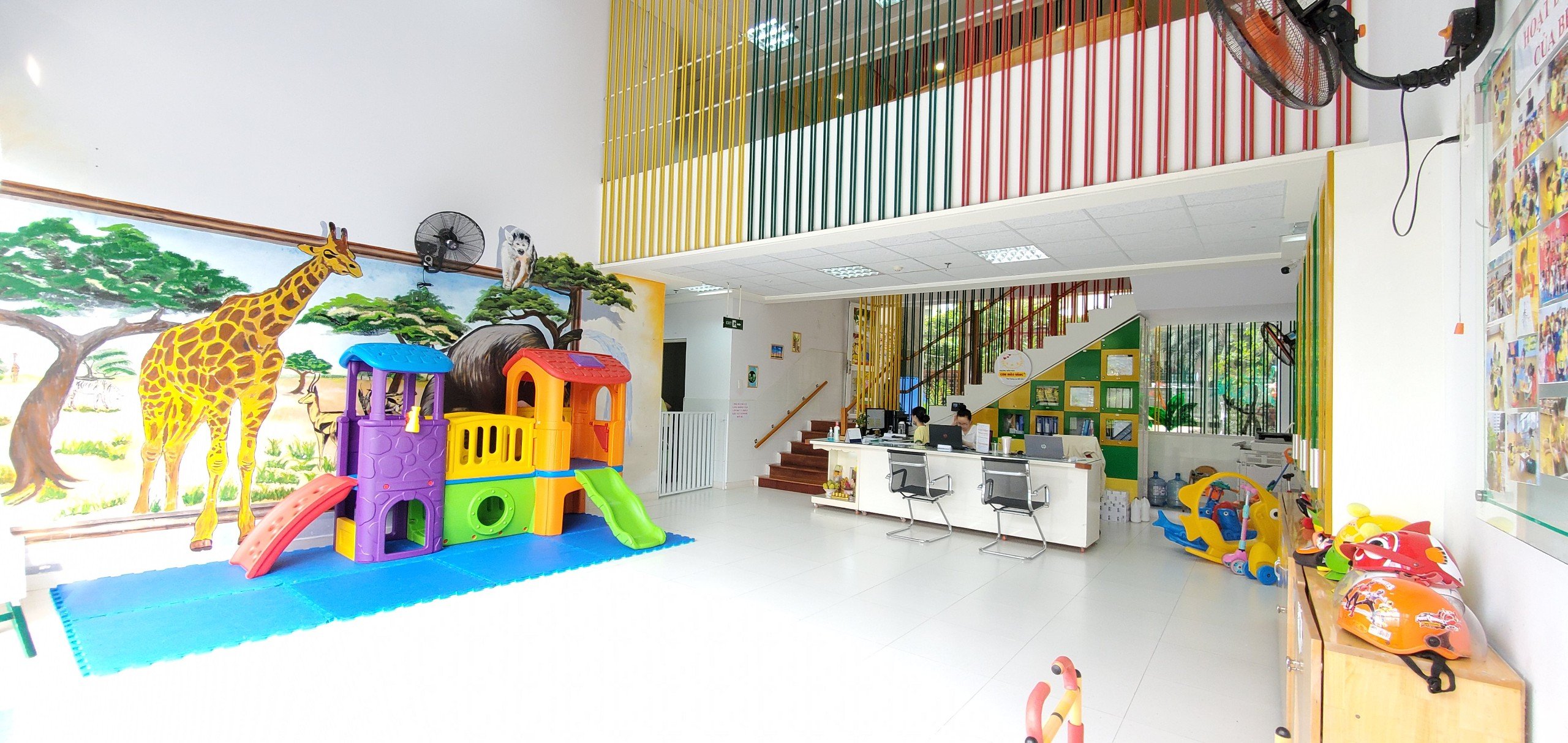 Cơ sở vật chất hiện đại, không gian thoáng mát, sạch sẽ; nhiều môi trường khác nhau cho bé hoạt động.