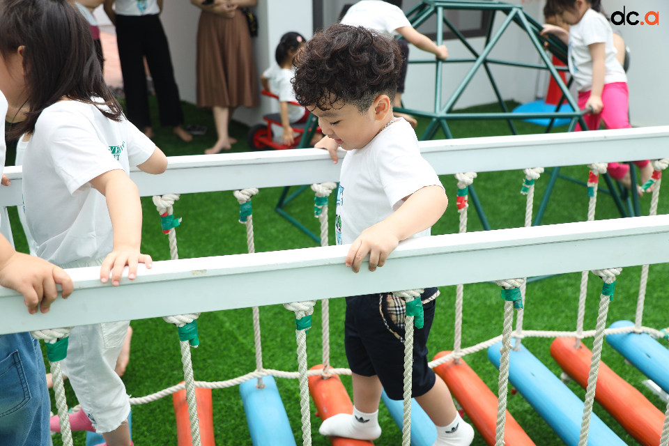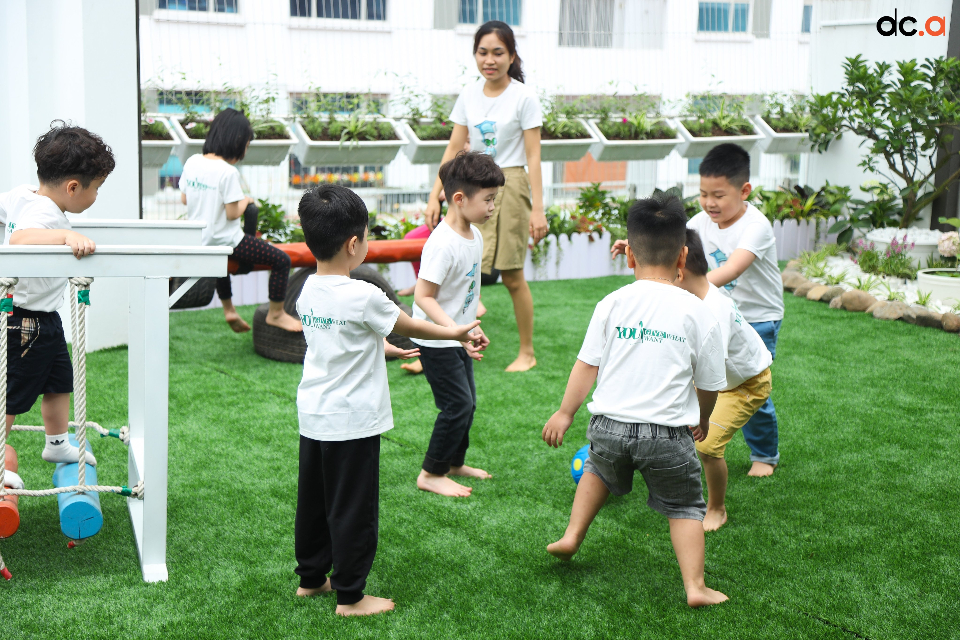 - Sân chơi cho trẻ ngoài trời rộng hơn 150m2 đầy đủ đồ dụng, dụng cụ vận động.