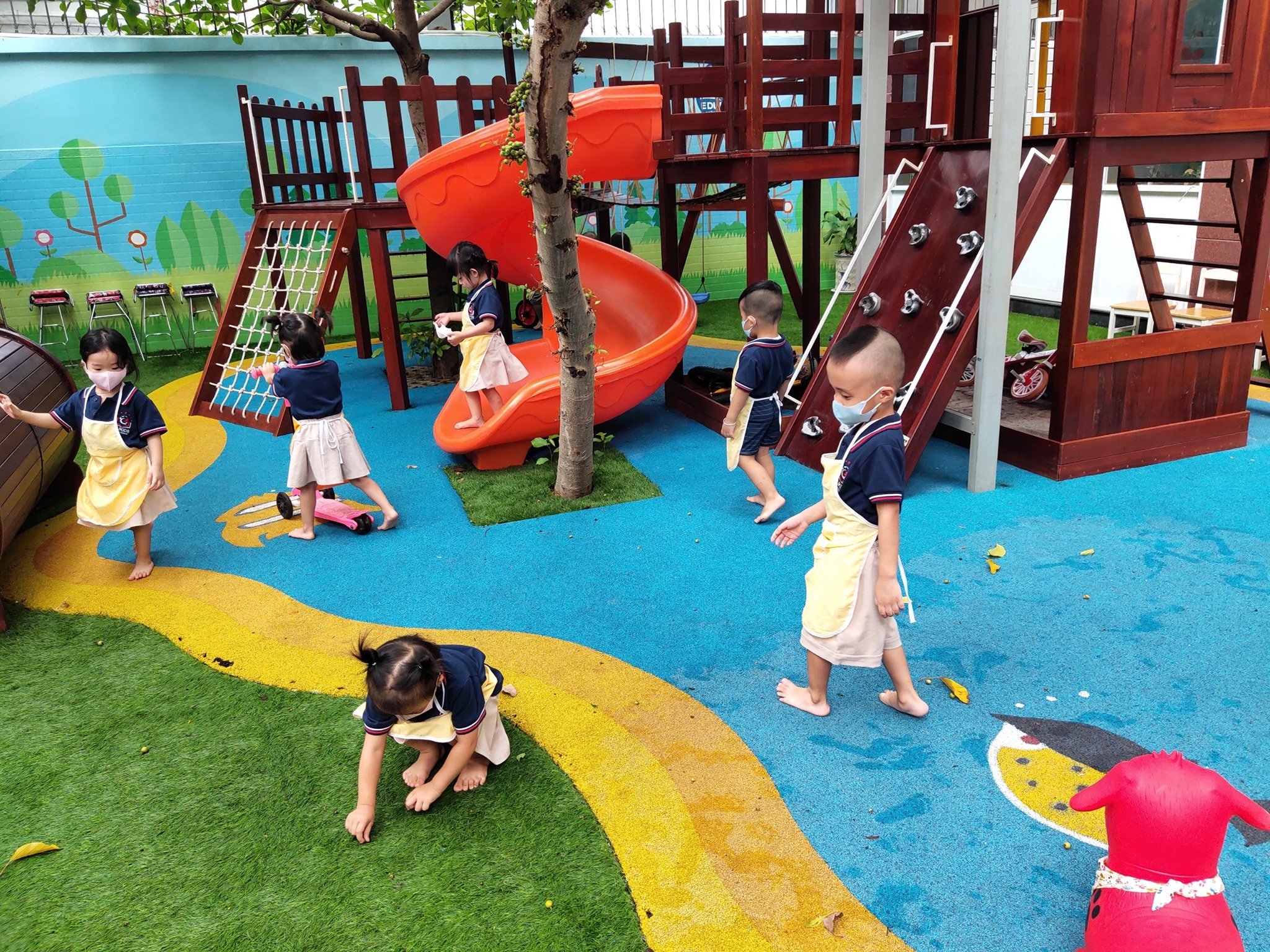 Sau những giờ học trên lớp, con được thoải mái giải tỏa năng lượng bằng những hoạt động ngoài trời.