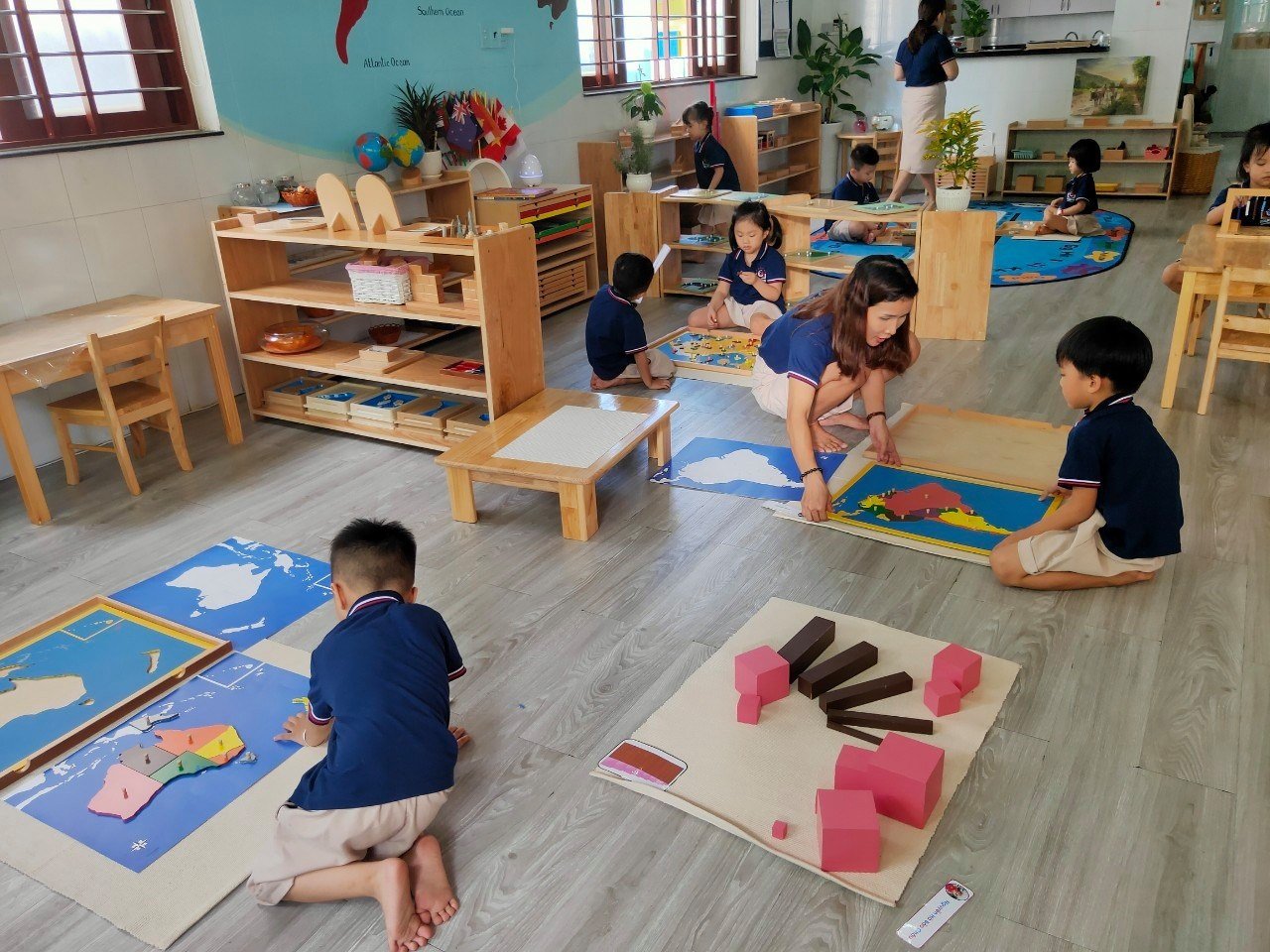 Chương trình học tại trường được thiết kế theo phương pháp Montessori không trùng lặp tại bất cứ trường mầm non nào được ứng dụng đa dạng ở tất cả các lĩnh vực học: Practical life, Math, Language, Art & craff, Astronomy, Science… do những giáo viên được đào tạo chuyên sâu về Montessori, yêu trẻ và giàu kinh nghiệm trực tiếp hướng dẫn bé.