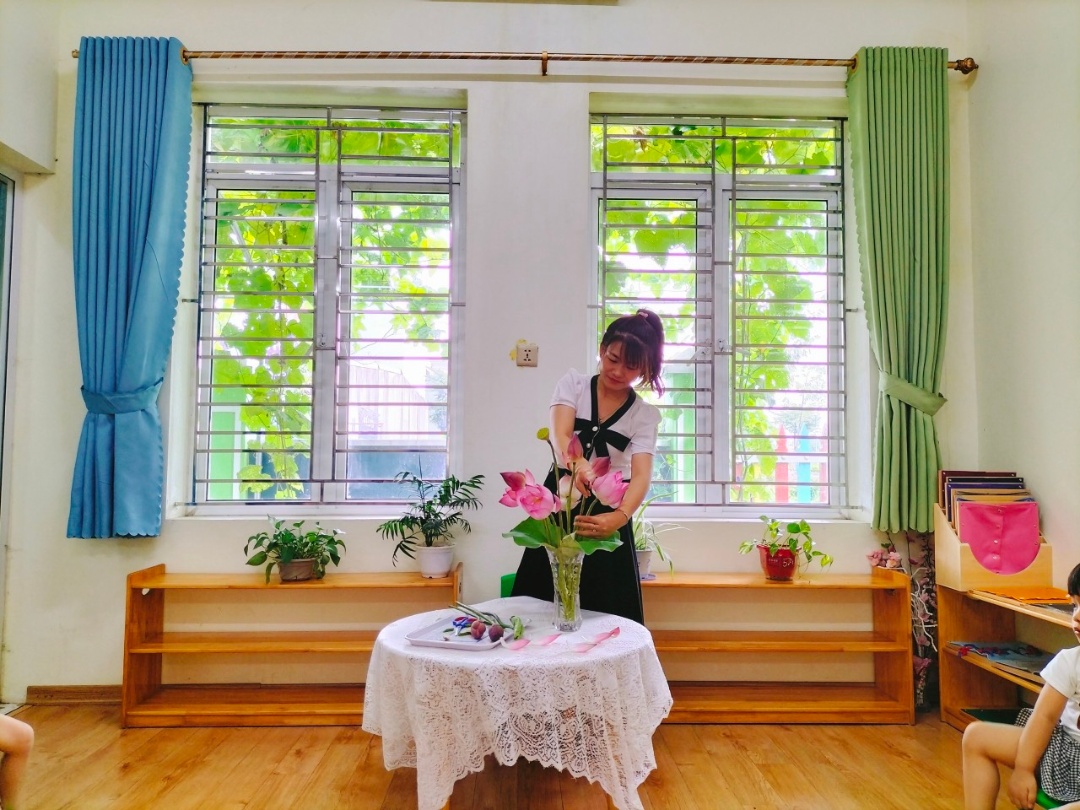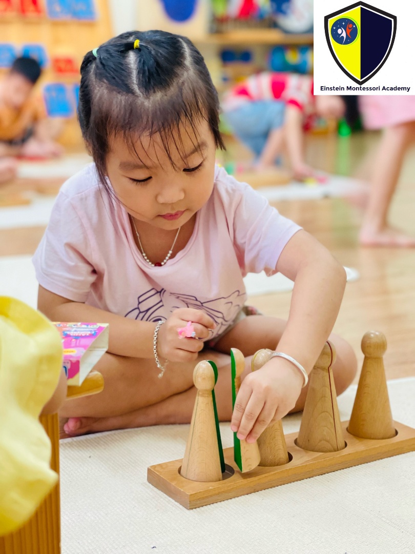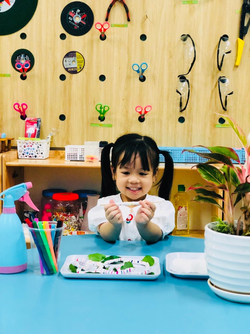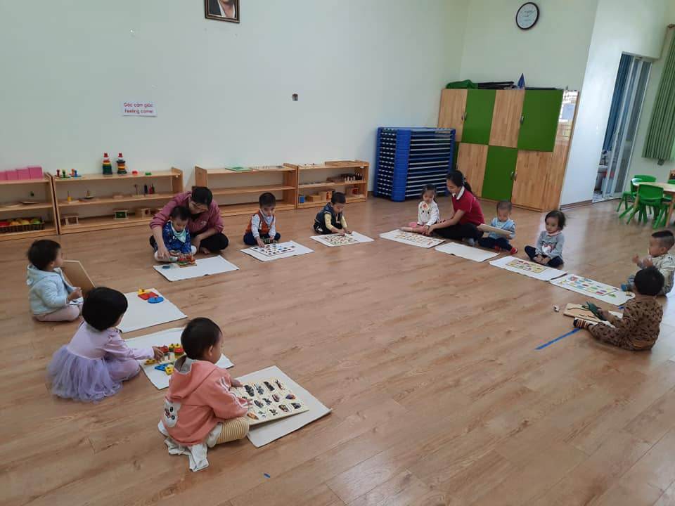 Đối với lứa tuổi này, nhà trường vẫn tiếp tục duy trì cho các con tham gia nhiều hoạt động khám phá, các tiết học với giáo cụ Montessori, các trò chơi vận động ngoài trời các ngày trong tuần.