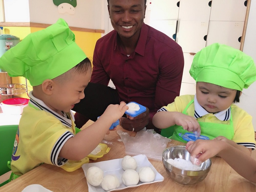 Các bé được học tiếng anh tất cả các buổi chiều trong tuần cùng giáo viên Việt nam và cả Gv Bản ngữ