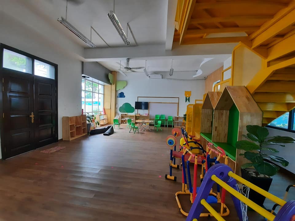 Trường mới xây thoáng mát sạch sẽ, đảm bảo lấy được nhiều ánh sáng tự nhiên nhất cho bé phát triển toàn diện.