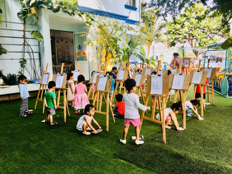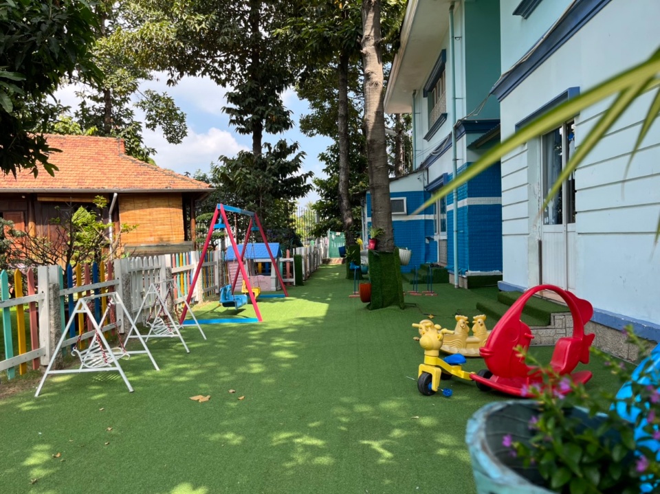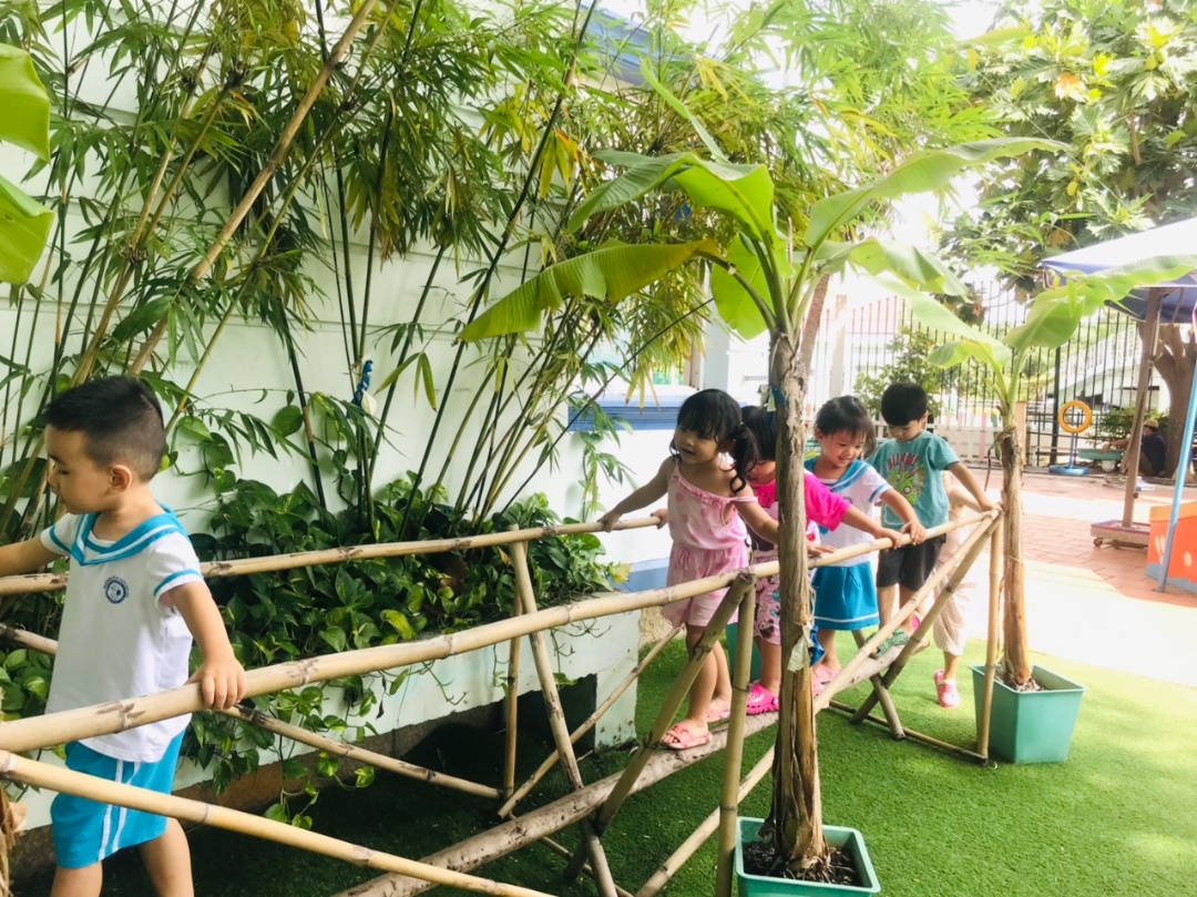 2. Không gian xanh: trường nằm ven sông với không gian bao phủ cây xanh và bóng mát. Giúp bé được sống trong môi trường trong lành, hoà mình cùng thiên nhiên.