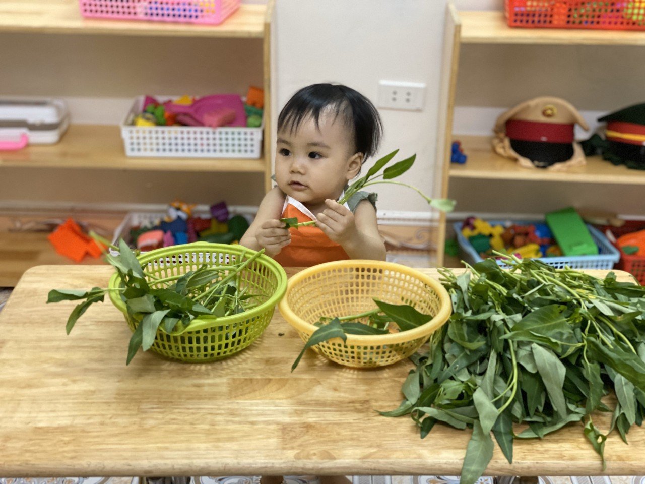 - Góc thực hành cuộc sống theo phương pháp Montessori giúp trẻ độc lập, tự chủ, tập trung.