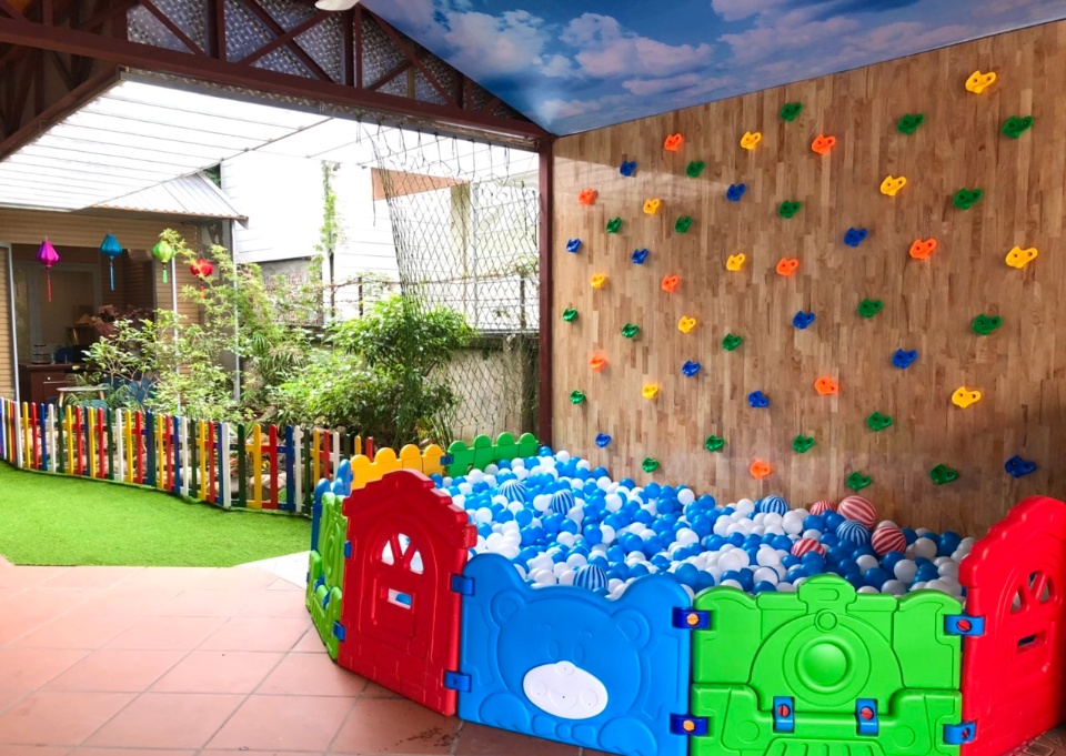 Không gian trường thoáng mát mầu sắc, Khu vui chơi đa dạng và rộng rãi 160m2.