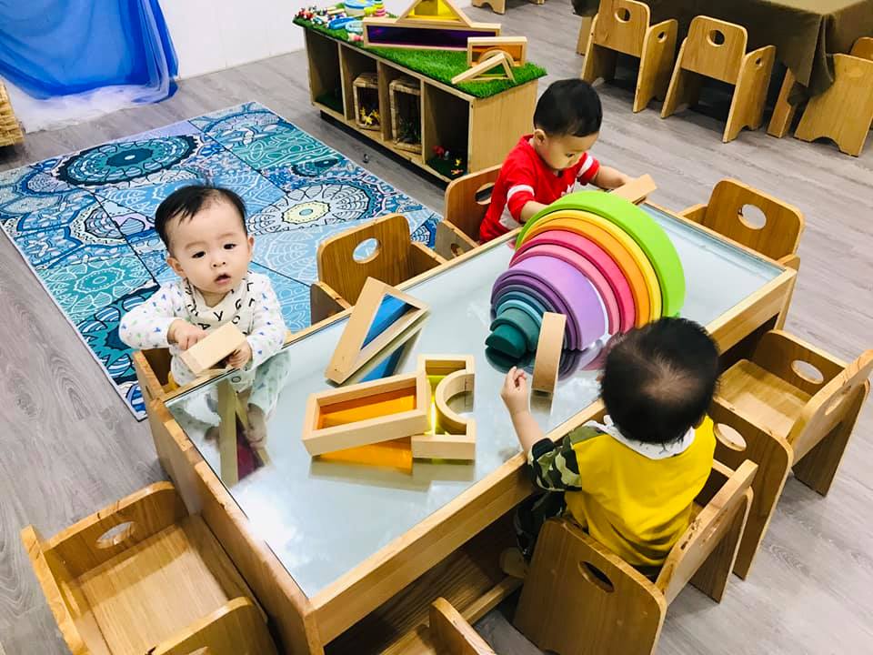 Không gian học được bố trí linh hoạt giúp bé phát huy tối đa khả năng sáng tạo và tâm lí thoải mái khi học tập và vui chơi.