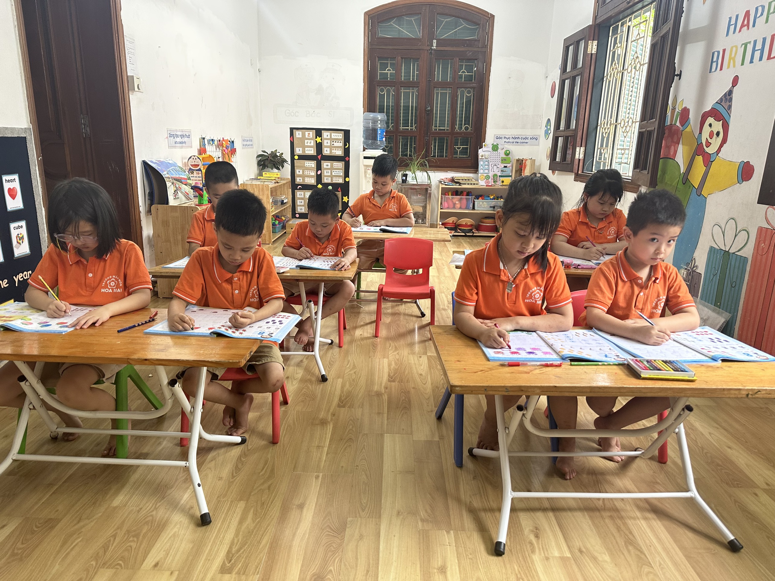 Chương trình giảng dạy tại Trường Mầm Non Hoa Mai - Định Công theo phương pháp song ngữ. Bé sẽ được học với giáo viên bản ngữ và tham gia các lớp năng khiếu: võ, mỹ thuật, múa... Với mục tiêu phát triển ở trẻ các yếu tố :