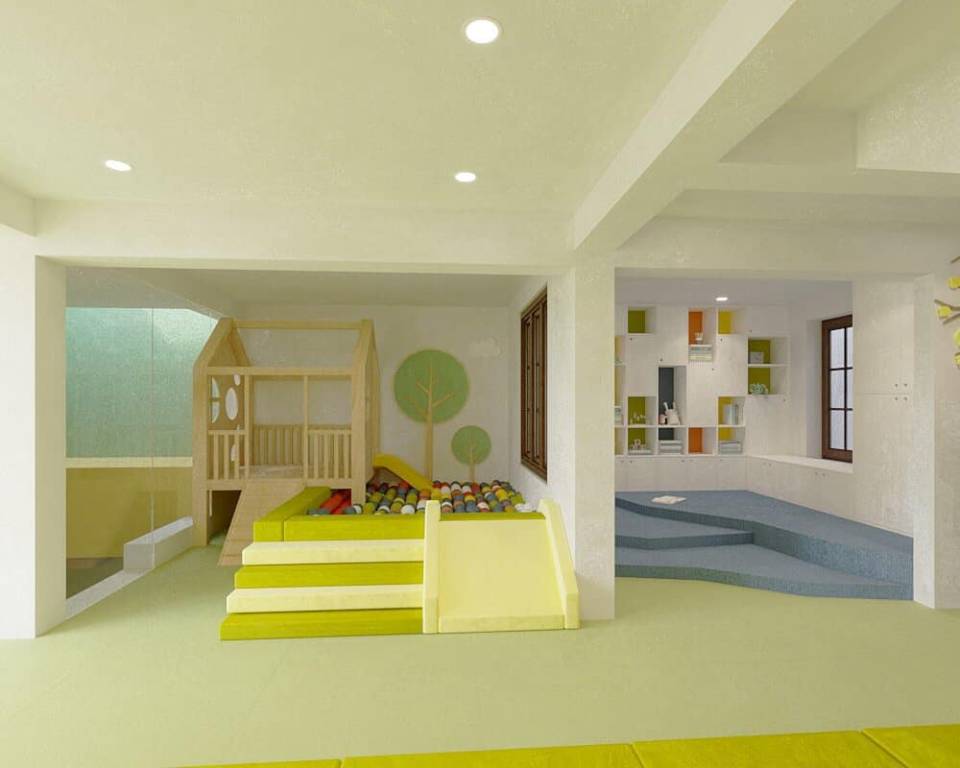 Có khu vui chơi tổ hợp trong nhà. bếp ăn 1 chiều theo đúng quy định.
