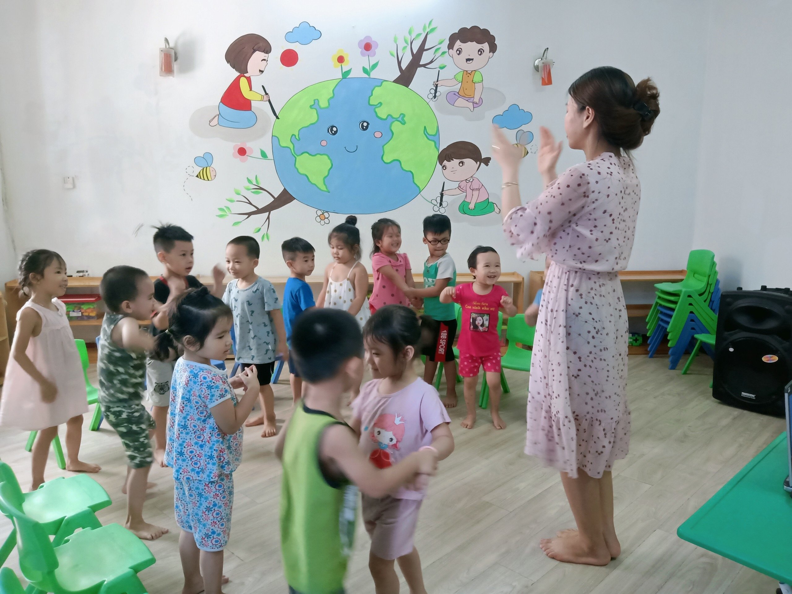 Phòng học của các con thì khang trang sạch sẽ , mát mẻ mùa hè và ấm áp vào mùa đông .
