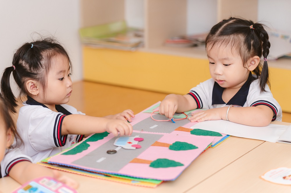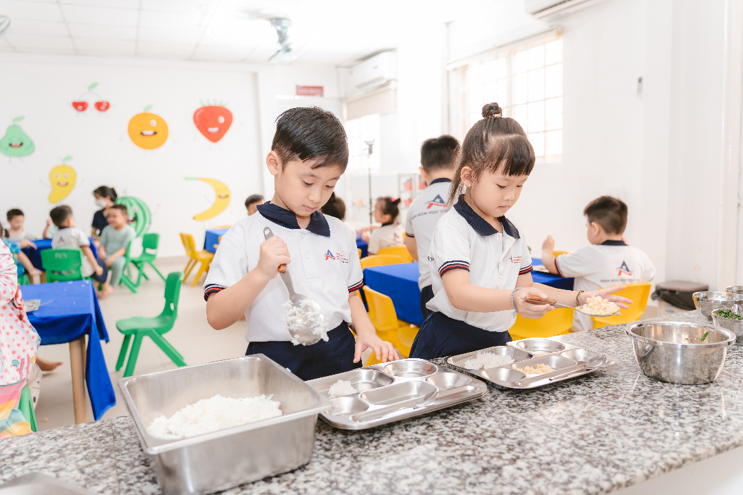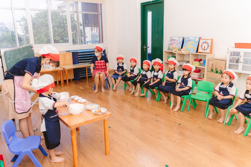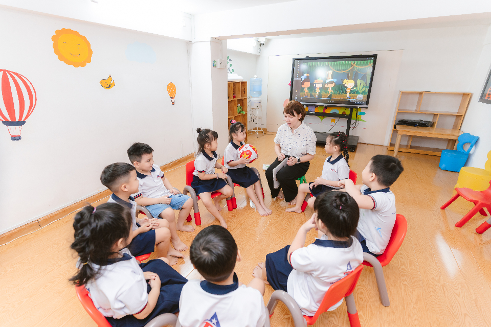 Ngoài ra, trường MN AAE Cali Quận 11 còn có chương trình Tiếng Anh (ESL) theo khung: 4 - 10 tiết/tuần – trong đó có 02 - 04 tiết GVNN rèn phát âm chuẩn cho trẻ. Đặc biệt, việc học ngôn ngữ song song với hoạt động mô phỏng thực tiễn sẽ giúp trẻ khắc sâu hơn vốn từ vựng và cấu trúc câu, phát triển khả năng song ngữ ngay từ sớm.