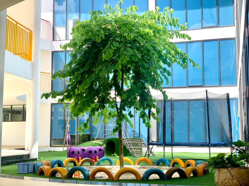 Trường có sân chơi, sân bóng....với diện tích rộng rãi.