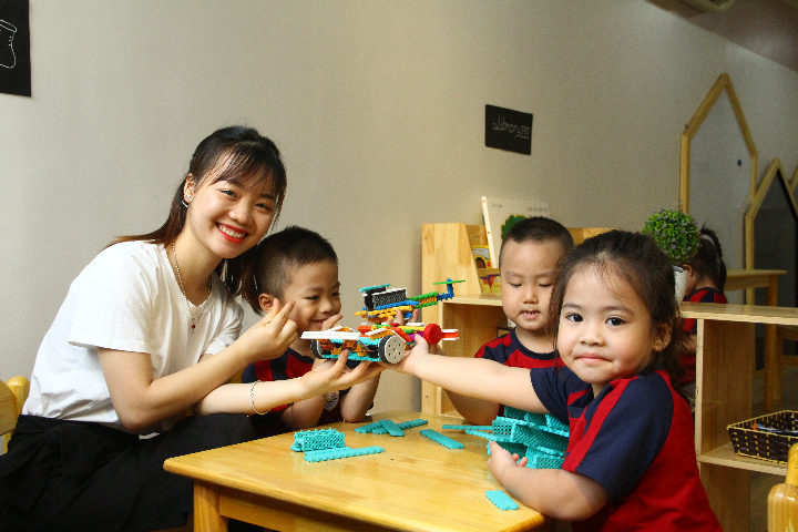 - Thực hiện theo dự án (30-33 dự án/ năm học). Hoạt động vui chơi ứng dụng theo phương pháo tiên tiến có các khu hoạt động: Practice life, Art and craft, STEM, Maths....