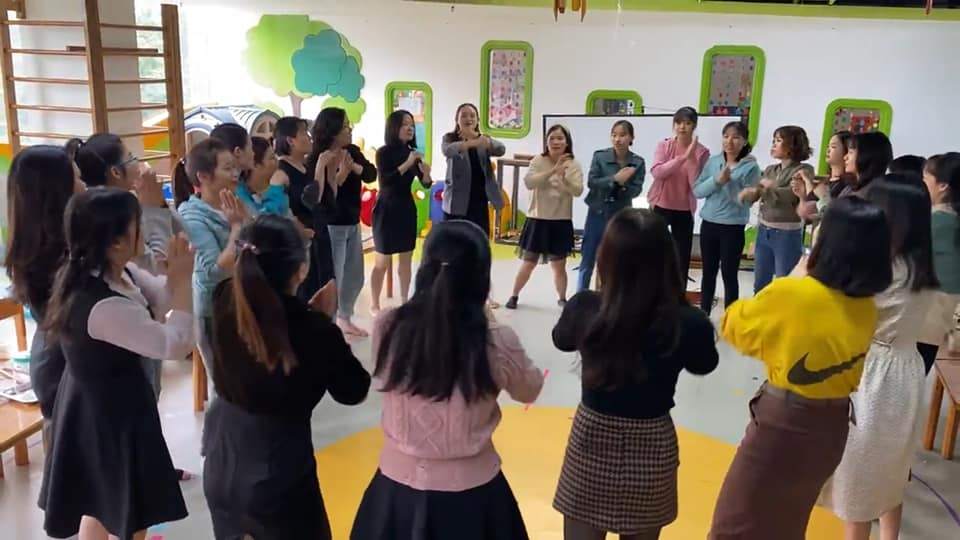 Nhà trường thường xuyên đào tạo nội bộ để các cô có cơ hội trau dồi và học hỏi để nâng cao tay nghề.