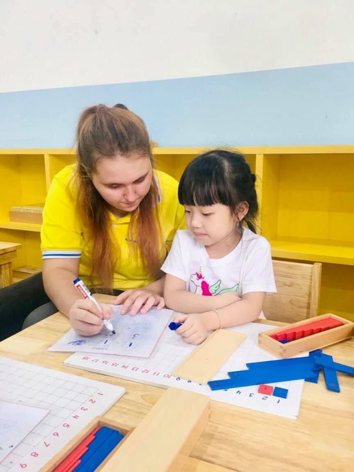 Giáo viên đều được training rất kỹ về triết lý giáo dục tại trường, hiểu từng giai đoạn nhạy cảm của trẻ, dùng từ tích cực, nói chuyện nhỏ nhẹ, kiên nhẫn.