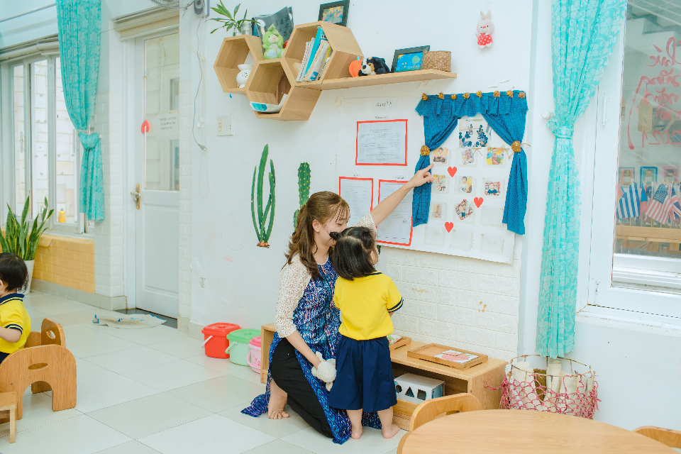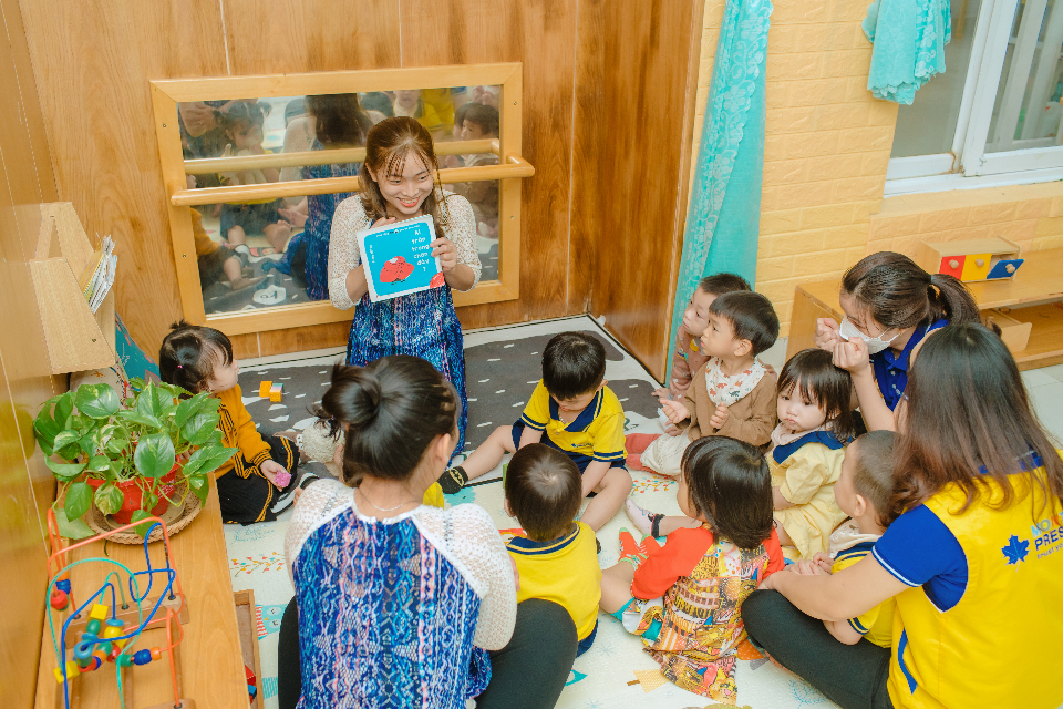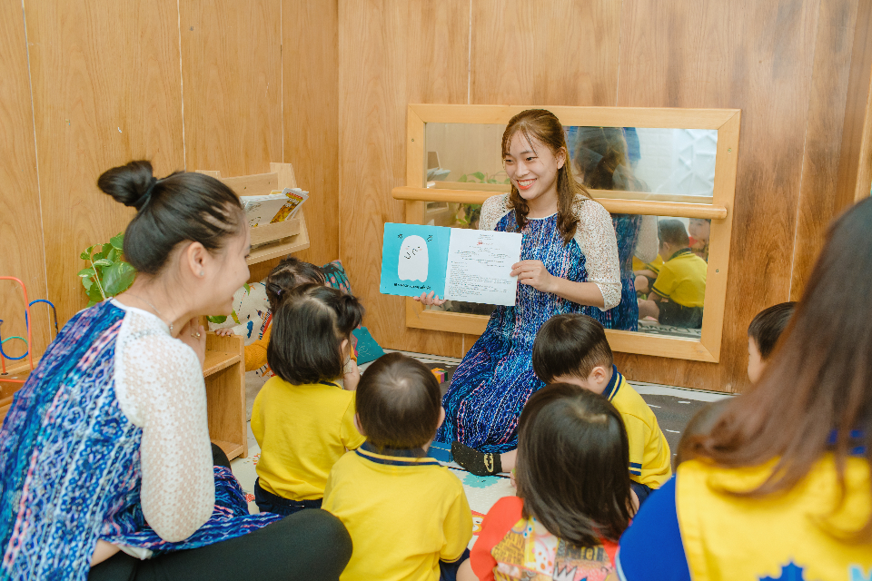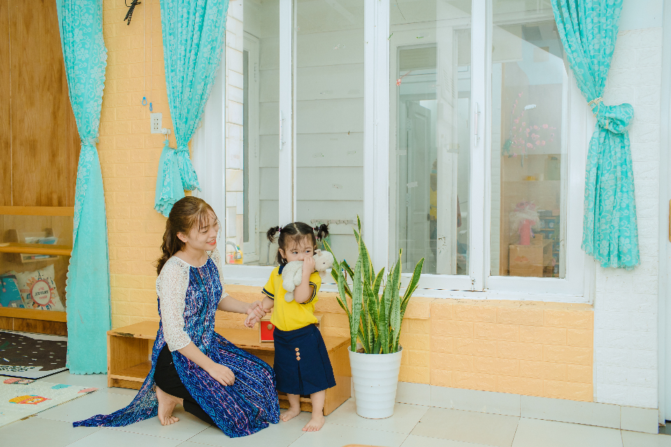 Giáo viên luôn mỉm cười và nhẹ nhàng với trẻ.