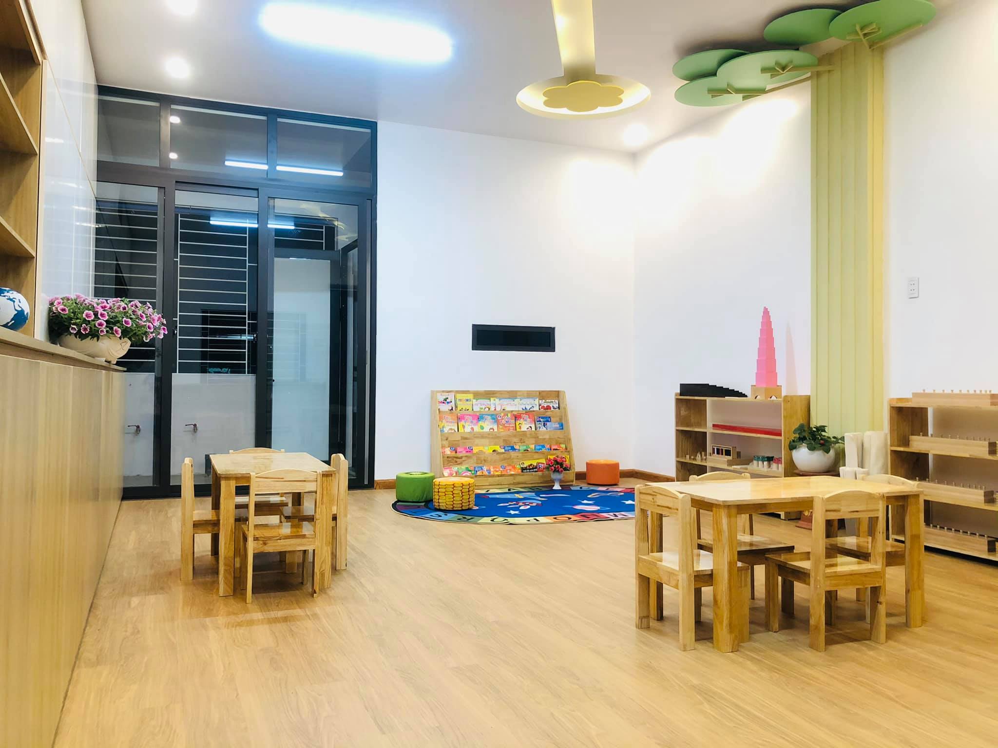 Trường mới xây thoáng mát sạch sẽ, đảm bảo lấy được nhiều ánh sáng tự nhiên nhất cho bé phát triển toàn diện.