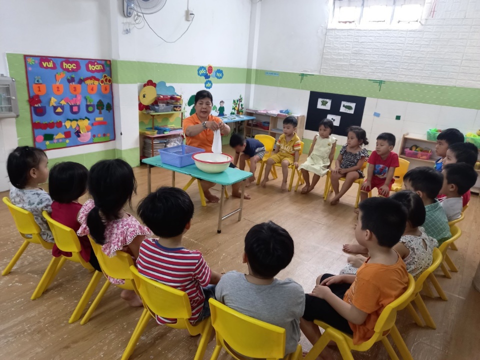 Đội ngũ giáo viên luôn thấm nhuần tư tưởng nuôi dạy các con trong tình yêu thương, các cô luôn tạo điều kiện tốt nhất để bé phát huy tiềm năng sẵn có, đồng thời dạy bé các kiến thức, kỹ năng trong cuộc sống.