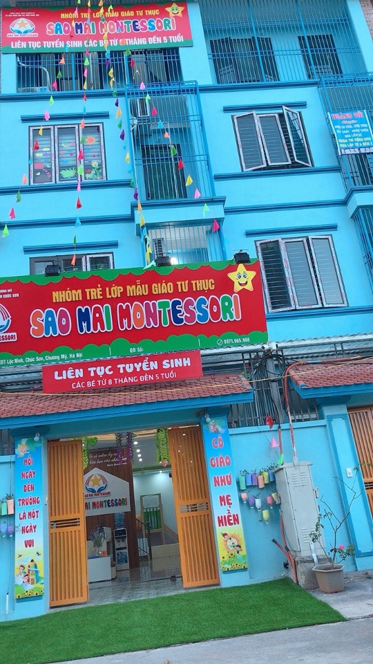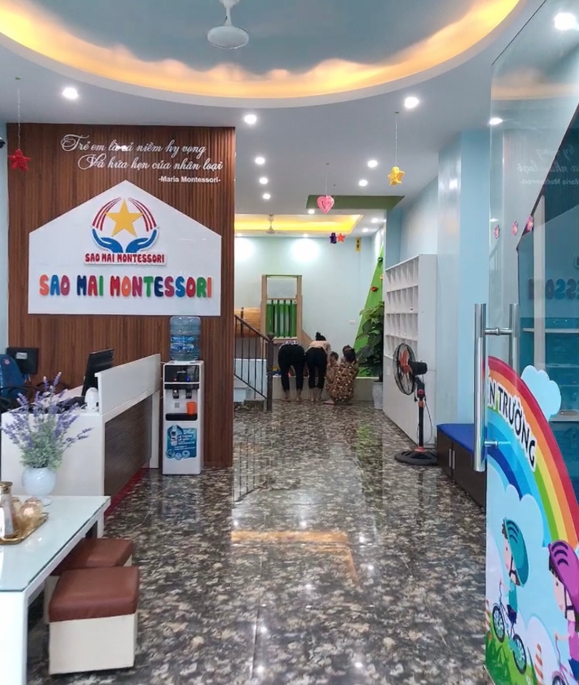 Trường mầm non Sao Mai nằm trong khu vực yên tĩnh, không gian thoáng mát, trường lớp sạch sẽ, sân chơi trong nhà hiện đại, an toàn, bếp ăn 1 chiều thiết kế riêng phục vụ mầm non.