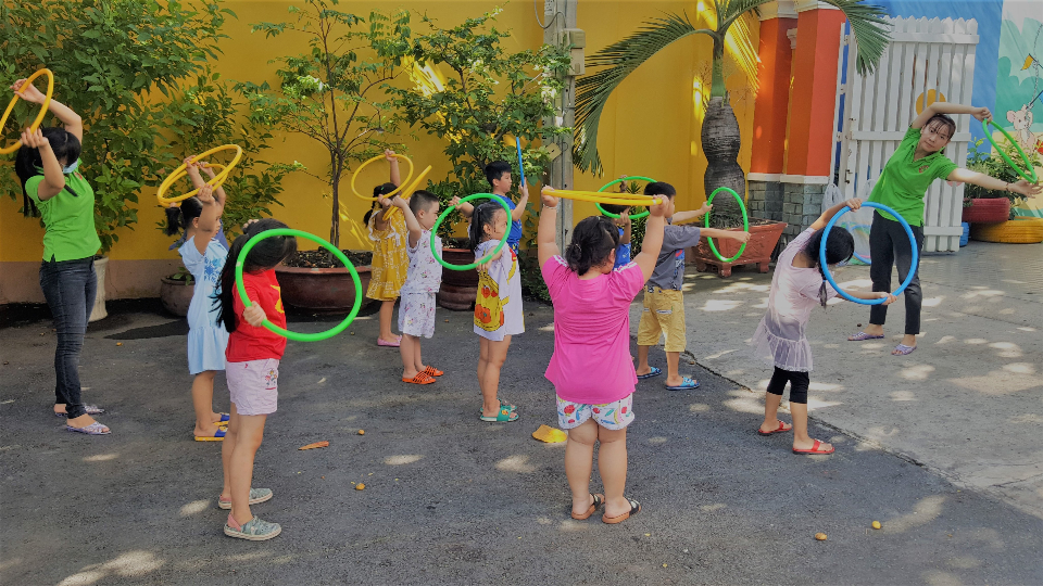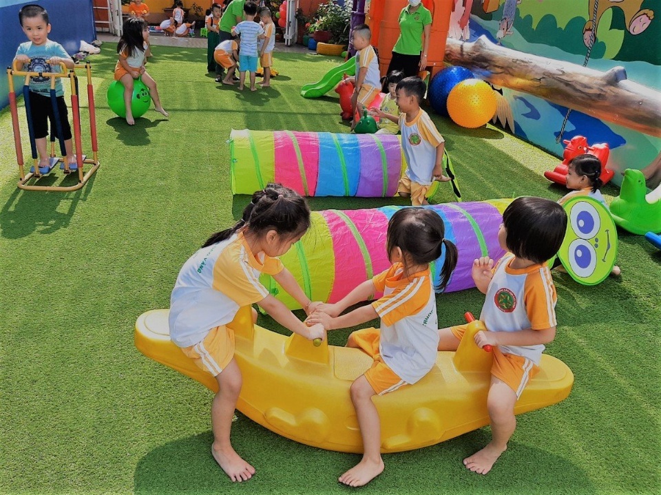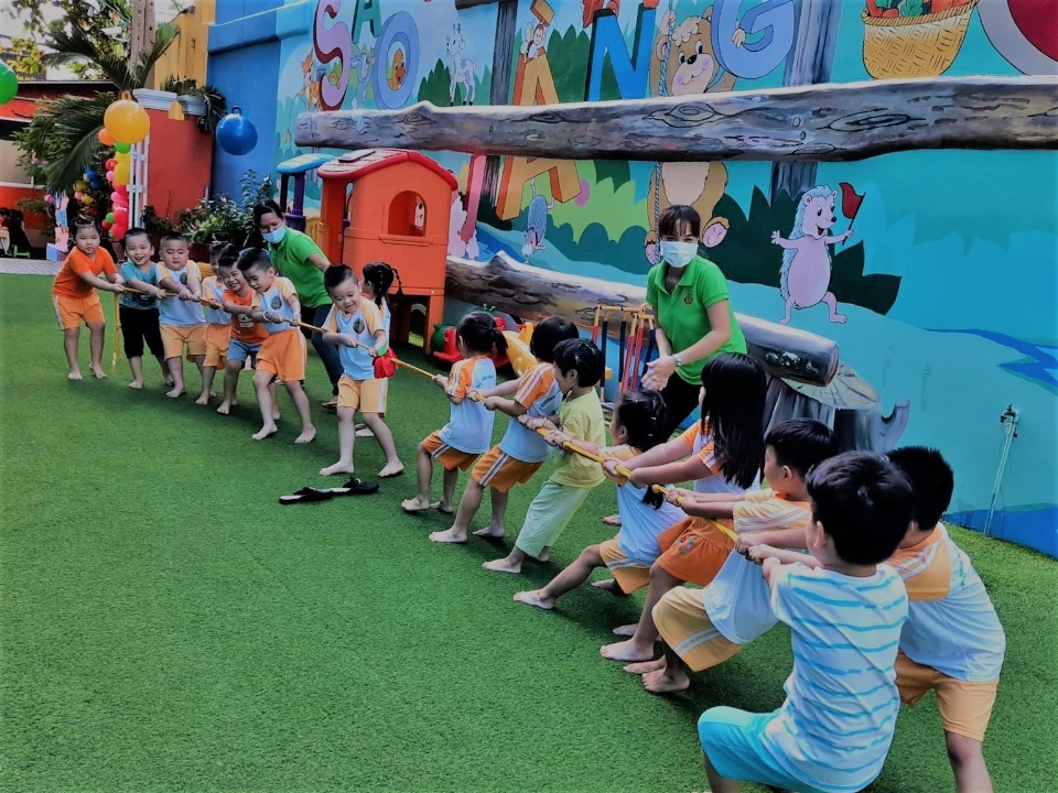 - Trẻ được tham gia những hoạt động học tập và vui chơi phát huy khả năng tư duy, sáng tạo, khám phá, tham gia các hoạt động giáo dục kỹ năng sống; học Aerobics Dance; Võ thuật; Anh văn với Giáo viên bản ngữ và Giáo viên Việt Nam; Đàn Organ; Mỹ thuật – Sáng tạo; Vận động ngoài trời, trò chơi vận động…
