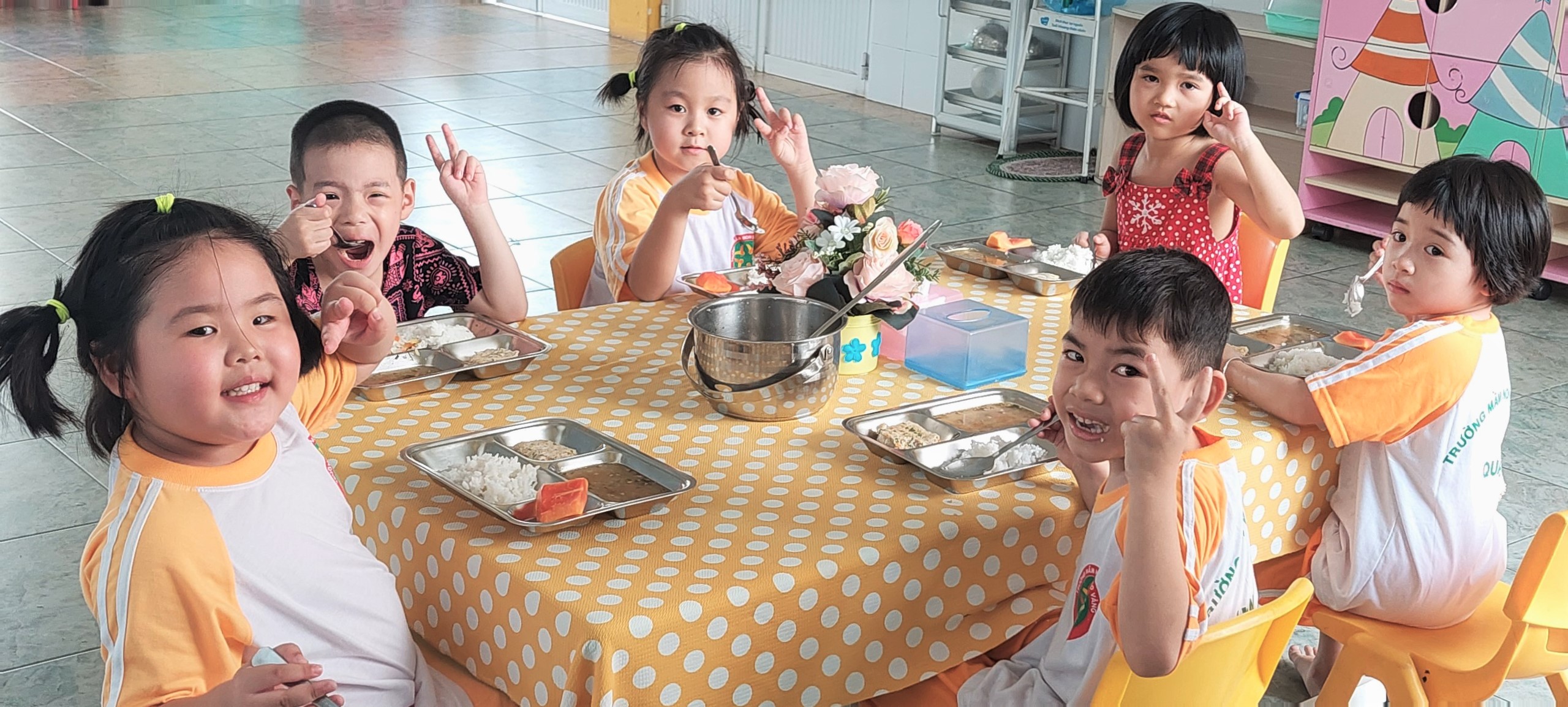 -Chế độ dinh dưỡng đầy đủ, đa dạng, thay đổi mỗi ngày, mỗi tuần,..Đặc biệt luôn đảm bảo an toàn vệ sinh thực phẩm.